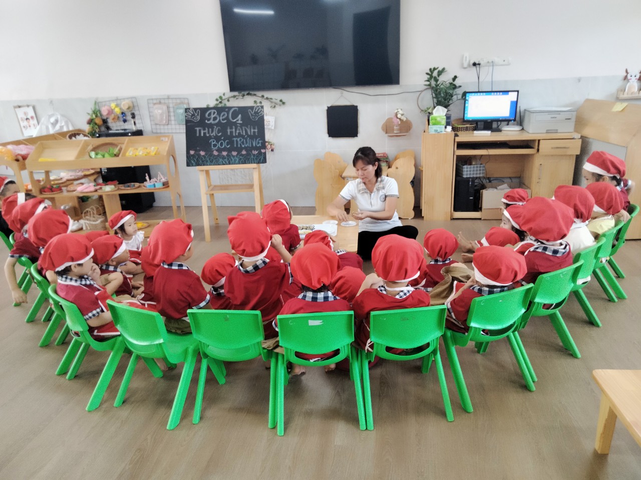 Cùng các bé lớp MGB C1 thực hành kỹ năng bóc trứng