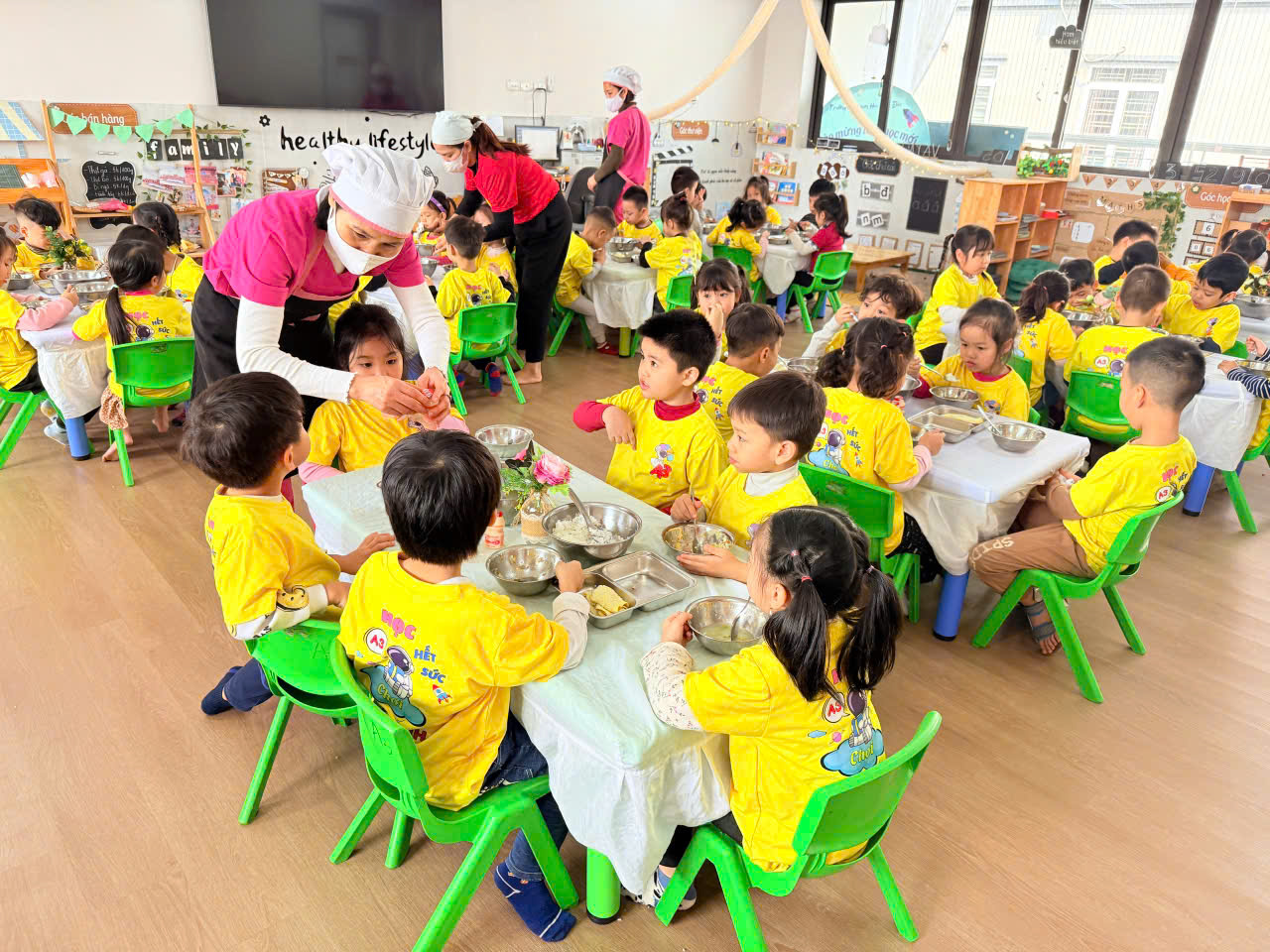 Ngoài việc xây dựng bữa ăn hợp lý, hàng tuần các giáo viên trên các lớp thường tổ chức cho trẻ tham gia các hoạt động trải nghiệm để giúp trẻ tìm hiểu về dĩnh dưỡng hàng ngày như hoạt động: làm nước ép dưa hấu, vắt nước cam, làm muối vừng, nặn bánh trôi, làm bánh dẻo…. Qua các hoạt động trải nghiệm đã giúp trẻ hiểu hơn về giá trị dinh dưỡng trong các món ăn, từ đó giúp trẻ phát triển toàn diện cả về thể chất và tinh thần.