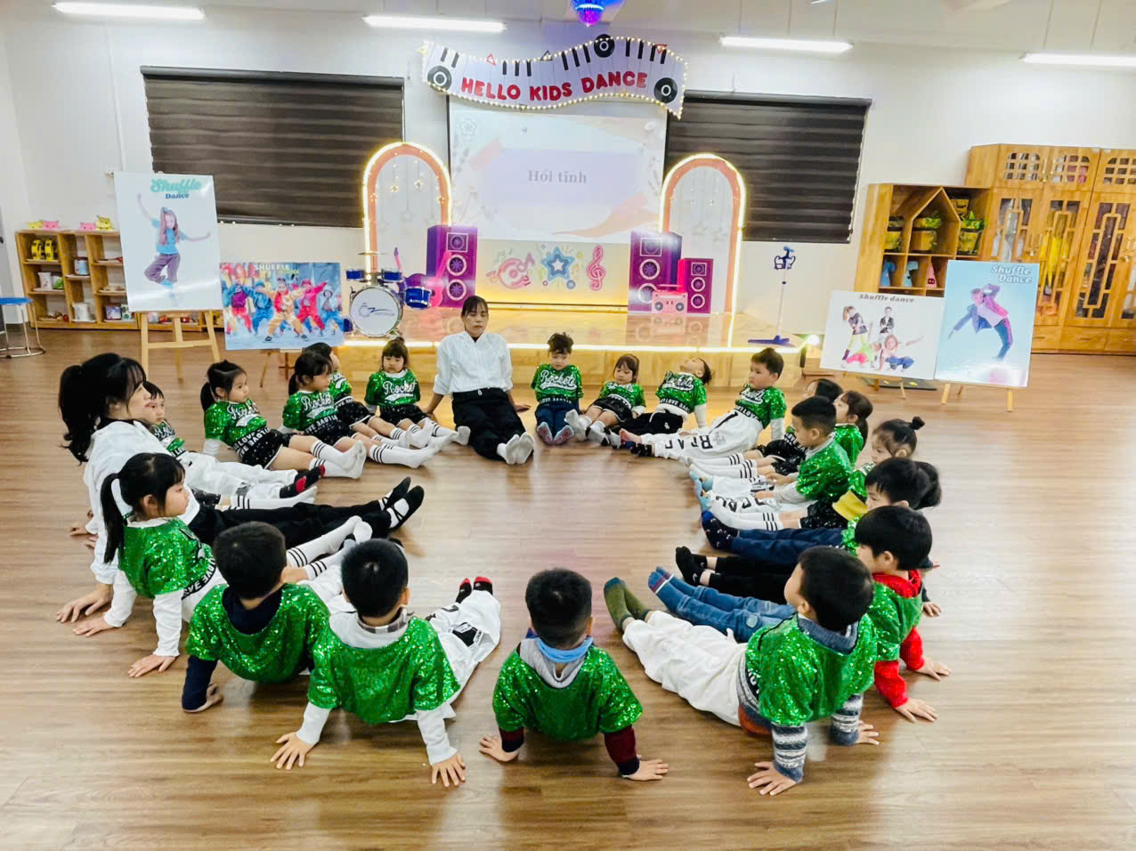 Hôm nay, các bạn nhỏ cùng nhau nhảy “SHUFFLE DANCE” Các bạn vừa tập vừa đếm theo nhịp cùng cô giáo. Không khí trong lớp học trở nên sôi động hơn