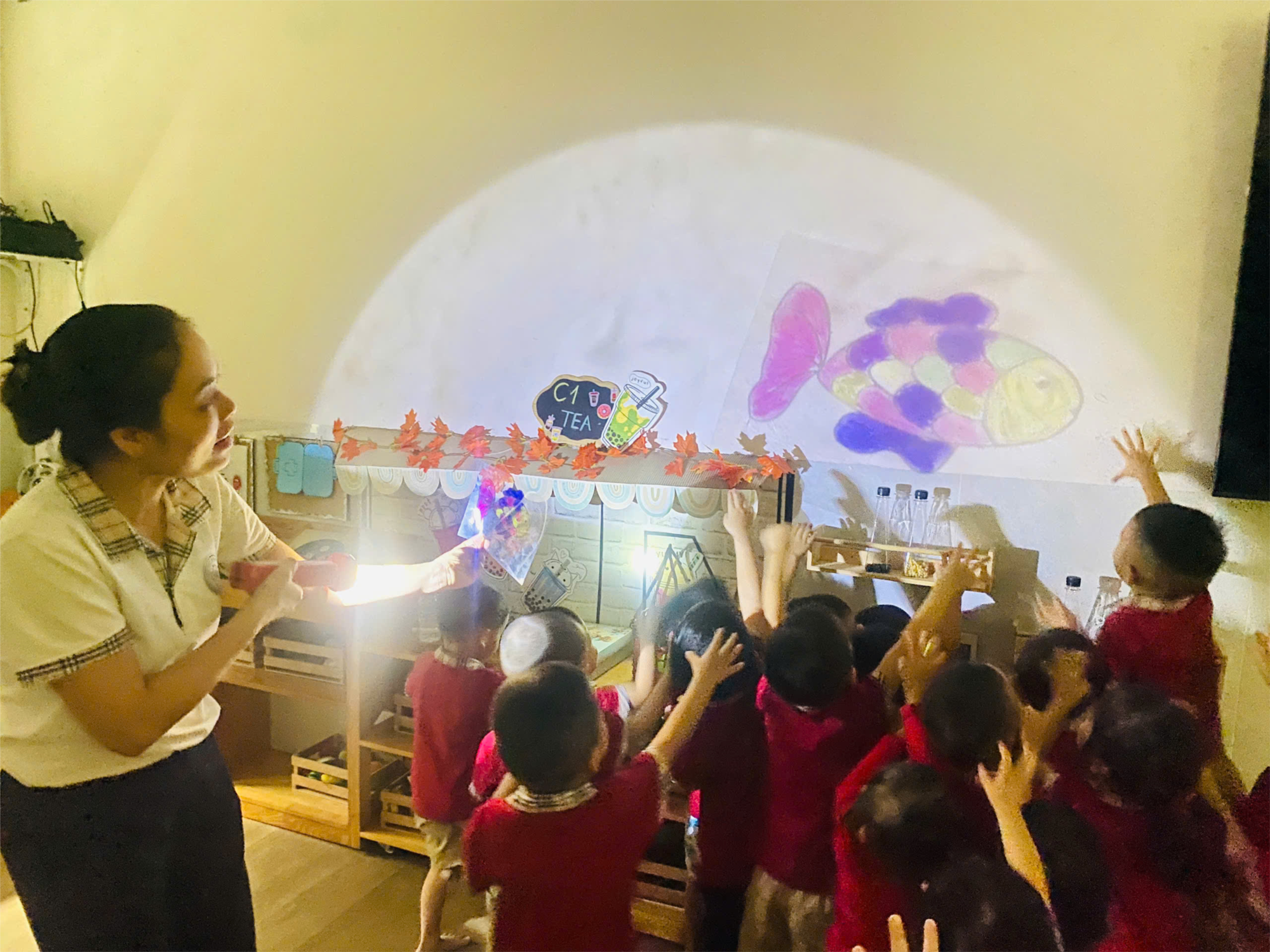 🌺🍁 Từ 1 bức tranh trẻ được tự tay tô màu , dưới ánh sáng của đèn pin, bức tranh có thể phóng to nhỏ tuỳ ý theo độ chỉnh của đôi bàn tay, trẻ dễ bị lôi cuốn trước những cái mới cái lạ vì thế hoạt động của cô trò lớp Mẫu Giáo bé C1 đã diễn ra rất hào hứng và vui vẻ. Các bạn nhỏ được “ Học mà chơi, chơi mà học “, đó cũng là phương châm dạy học mà các cô giáo luôn mong muốn. Mời bố mẹ cùng nhìn ngắm các bạn nhỏ lớp mẫu giáo bé Mẫu giáo bé C1 nhé ❤