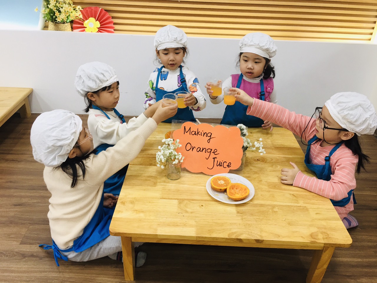 Chúng mình cùng xem các bạn lớp B1 vắt nước cam nhé!