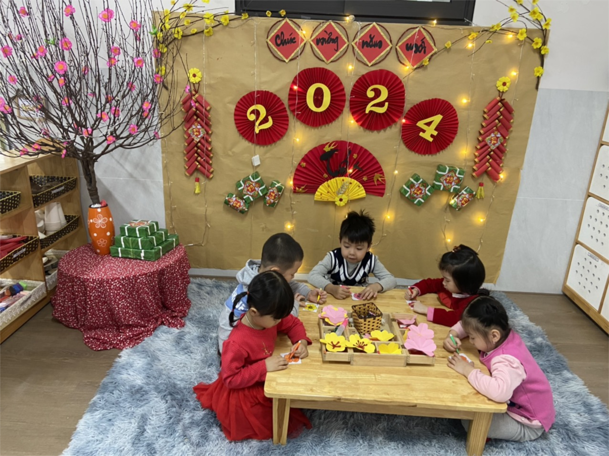 sau đây là 1 số hình ảnh của hoạt động trang trí cành đào của các bạn nhỏ lớp b4: