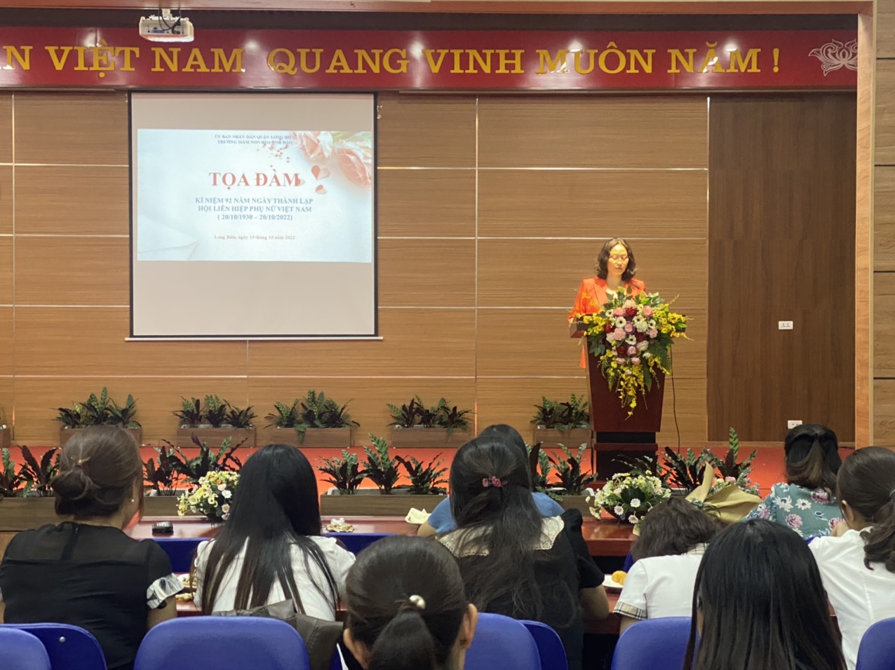 Chiều ngày 19/10/2022 BCH Công đoàn trường MN Hoa Anh Đào đã long trọng tổ chức buổi tọa đàm mít tinh kỷ niệm lần thứ 92 năm ngày thành lập Hội Liên hiệp Phụ nữ Việt Nam ( 20/10/1930 – 20/10/2022). Tới dự buổi mít tinh có đồng chí Nguyễn Thị Nghi Hương – Bí thư chi bộ - Hiệu trưởng nhà trường. Cùng với đó là sự có mặt của các đồng chí trong BGH, các đồng chí trong Ban chấp hành công đoàn và toàn thể các CBGV- NV.