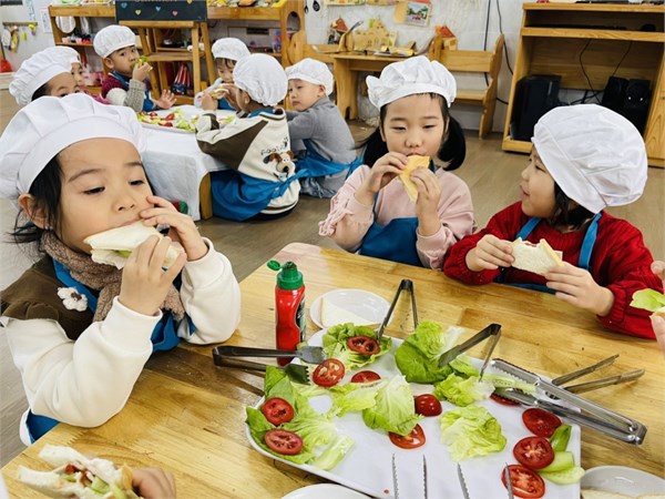 Tập ảnh : CÁC BÉ LỚP B1 LÀM BÁNH MỲ SANDWICH