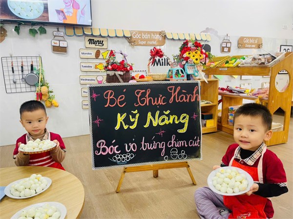 Tập ảnh : Hoạt động " Bóc trứng cút" của các bé lớp C2.