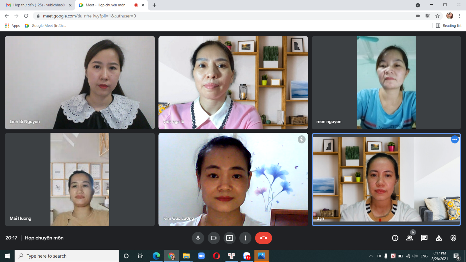 Truyền đạt và chia sẻ các nội dung sinh hoạt chuyên môn do đồng chí Lê Việt Nga – phó hiệu trưởng nhà trường triển khai kế hoạch bồi dưỡng sinh hoạt chuyên môn đến toàn thể giáo viên trong trường, phân công nhiệm vụ cụ thể đến các đồng chí trong tổ khối chuyên môn và các đồng chí giáo viên trong trường. Hướng dẫn xây dựng kế hoạch giáo dục và tập huấn sử phần mềm soạn bài GoKids. Tại buổi họp chuyên môn qua Zoom, giáo viên được thảo luận, chia sẻ và học hỏi lẫn nhau để giải quyết các vấn đề thực tế tình hình của trường, của lớp và đưa ra kế hoạch nhiệm vụ cho năm học theo khung chương trình của bộ giáo dục ,của phòng giáo dục. Các tổ khối chuyên môn xây dựng nội dung các bài tập, bài giảng điện tử, video hướng dẫn gần gũi trẻ, phù hợp với khung chương trình cùng phối kết hợp với phụ huynh chăm sóc giáo dục trẻ tại nhà trong thời gian nghỉ dịch để trẻ có điều kiện học tập vui chơi và phát triển toàn diện.