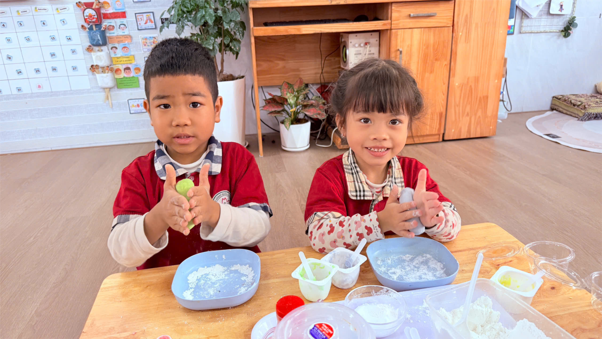 Hoạt động làm đất nặn từ bột mì đã mang đến cho các bạn nhỏ những trải nghiệm thú vị và bổ ích. Các con được hướng dẫn trộn bột mì với nước, muối và màu thực phẩm để tạo ra đất nặn an toàn, dễ sử dụng. Thông qua hoạt động, trẻ không chỉ rèn luyện sự khéo léo của đôi tay mà còn phát huy óc sáng tạo, hứng thú tham gia các hoạt động học tập trải nghiệm.