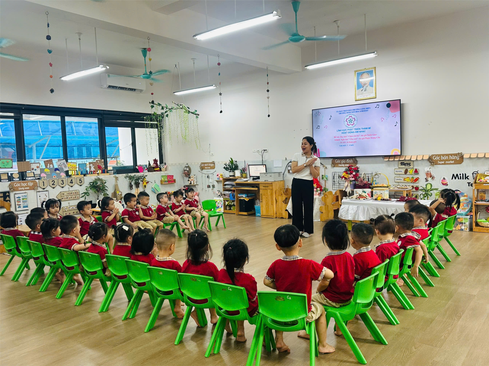 Hoạt động âm nhạc ở trường mầm non là một phần thiết yếu giúp phát triển toàn diện cho trẻ về cả thể chất, trí tuệ, thẩm mỹ và đạo đức, bao gồm các hoạt động như học hát, nghe hát, vận động theo nhạc và chơi trò chơi âm nhạc. Thông qua đó, trẻ được nuôi dưỡng tâm hồn, phát triển khả năng cảm thụ, nhạy bén với âm nhạc và hình thành sự tự tin, sáng tạo trong giao tiếp.