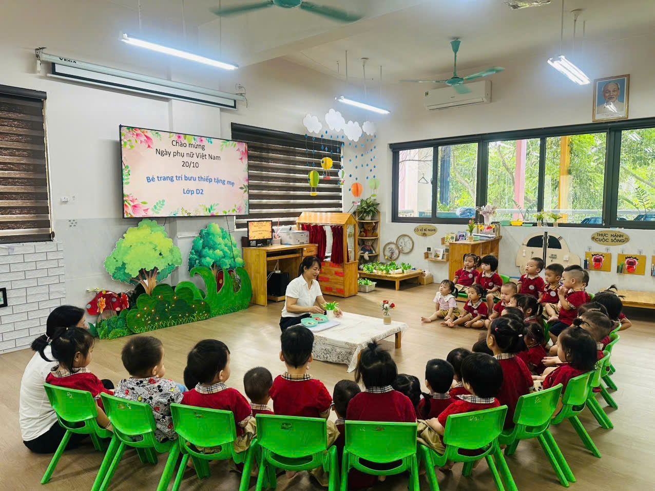 Nhân ngày ngày 20 tháng 10, các bạn nhỏ lớp nhà trẻ D2 đã cùng nhau làm những chiếc cốc hoa xinh xắn để tặng mẹ. Từng bàn tay nhỏ bé tỉ mỉ dán hoa, và những lời chúc đã thể hiện tình cảm chân thành dành cho người mẹ yêu quý của mình.
