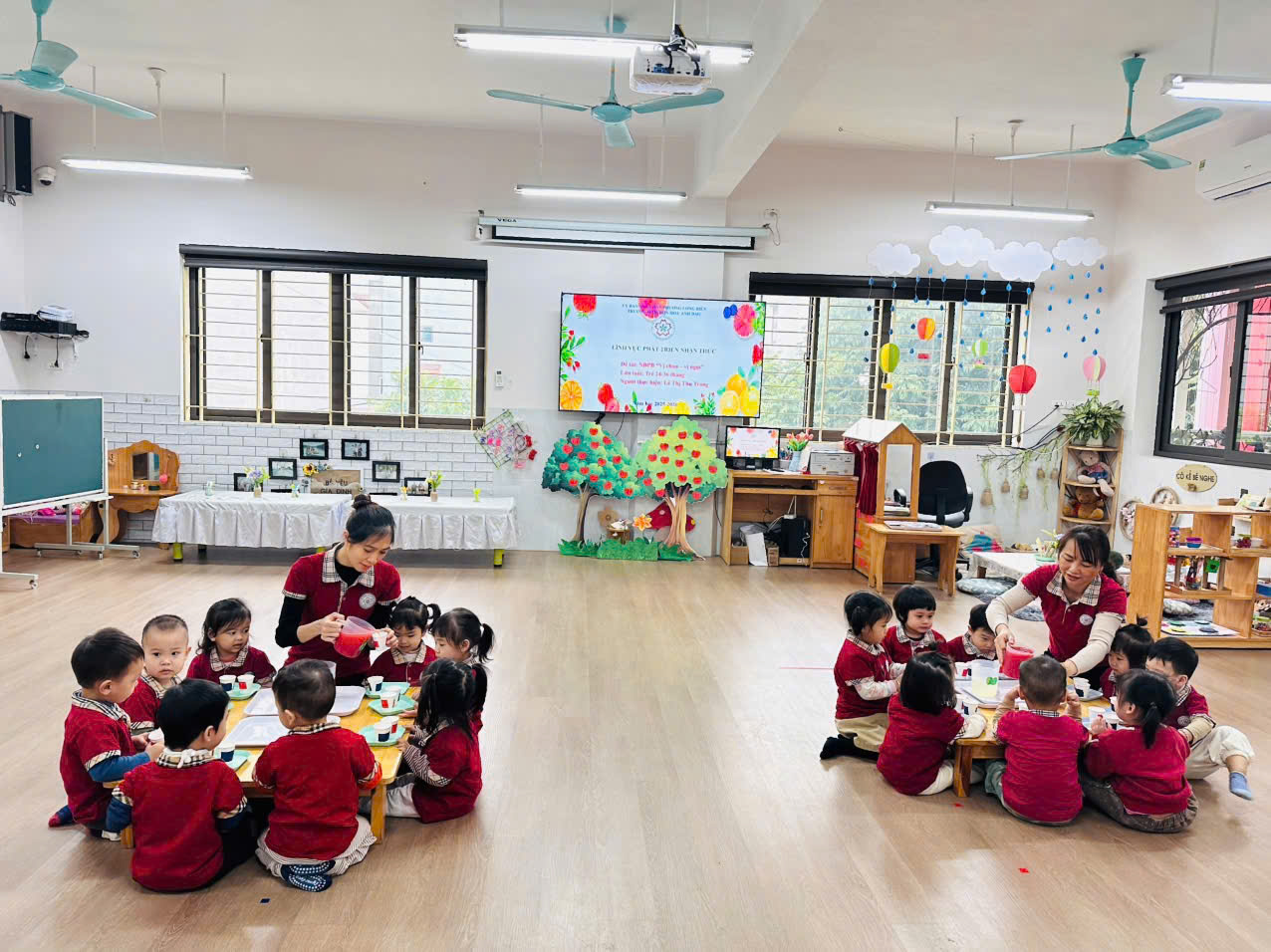 Giờ học nhận biết vị chua, vị ngọt của các bạn nhỏ lớp nhà trẻ D2 được tổ chức nhẹ nhàng, sinh động và phù hợp với đặc điểm phát triển của trẻ. Thông qua việc quan sát, nếm thử các loại quả quen thuộc như dưa hấu, chanh, xoài… hay kẹo ngọt, trẻ được trải nghiệm trực tiếp để phân biệt vị chua và vị ngọt. Trong giờ học, cô giáo sử dụng ngôn ngữ đơn giản, cử chỉ minh họa và khuyến khích trẻ nói lên cảm nhận của mình. Hoạt động này không chỉ giúp trẻ phát triển giác quan vị giác mà còn rèn luyện khả năng giao tiếp và hứng thú tham gia vào các hoạt động học tập.