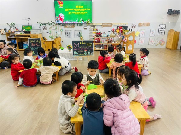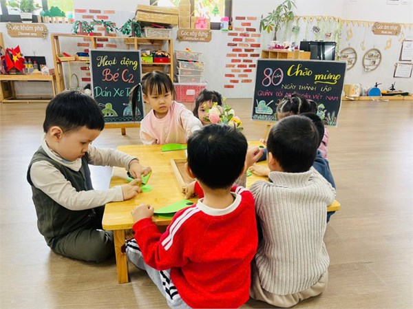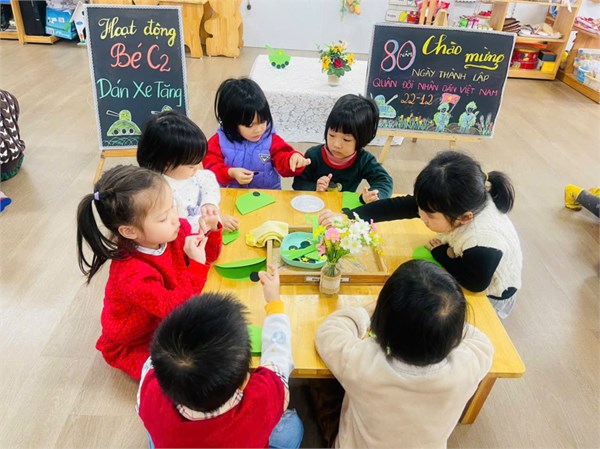 Tập ảnh : Hoạt động tạo hình" Dán xe tăng" của cô trò lớp C2.