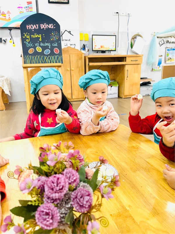 Tập ảnh : Hoạt động trải nghiệm " Bóc trứng chim cút" của các bé lớp C4.