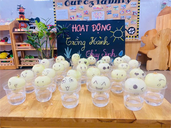 Tập ảnh : Hoạt động ' Trồng hành tây thủy sinh" của cô trò lớp bé C3.