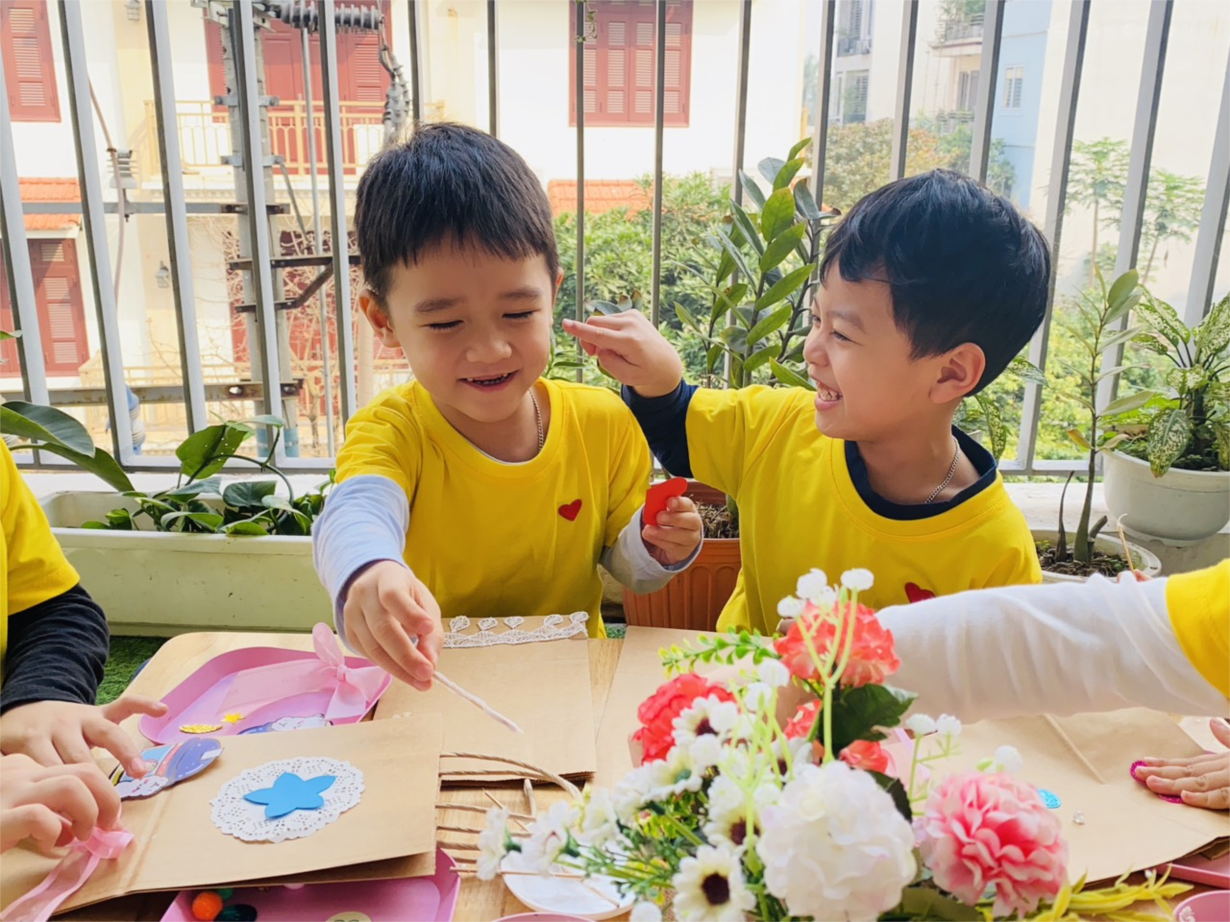 Hoạt động STEAM: Các bé lớp MGL A1 chế tạo đèn lồng