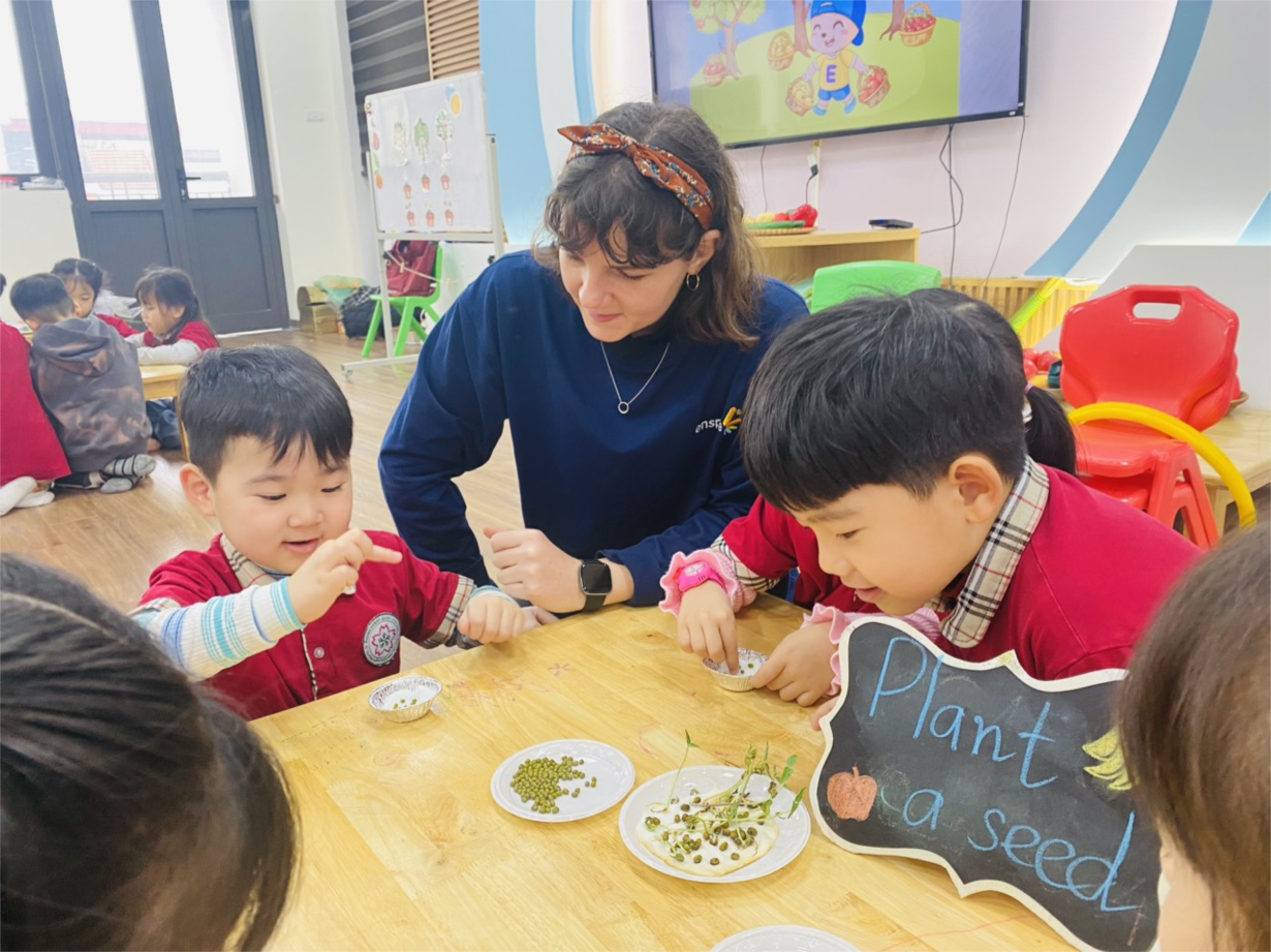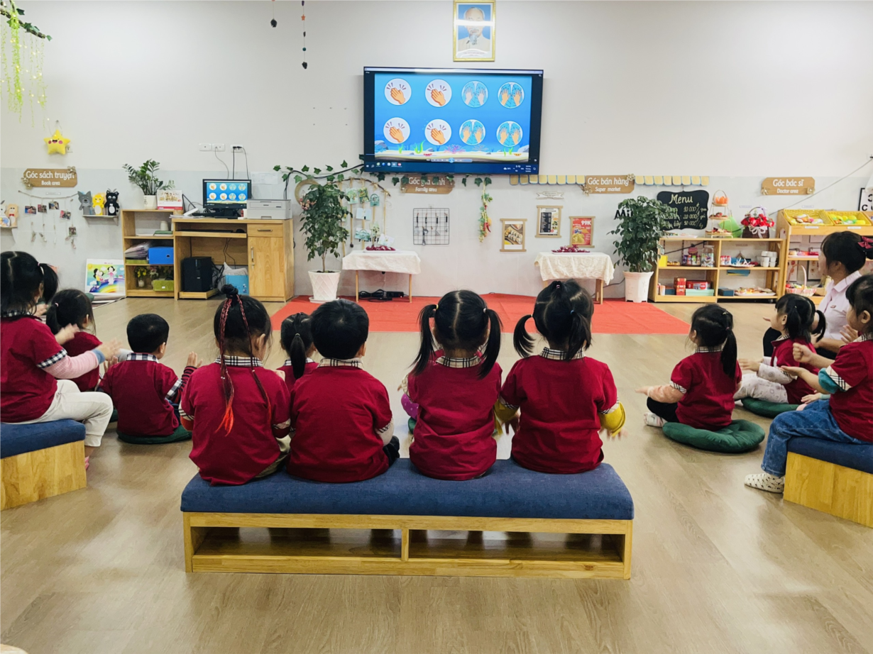 Giờ học làm quen với toán của các bé A1: Sắp xếp theo quy tắc 3 đối tượng