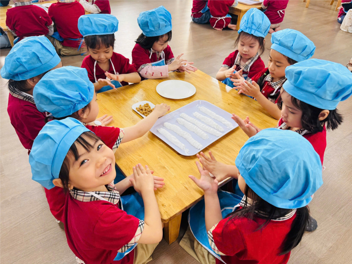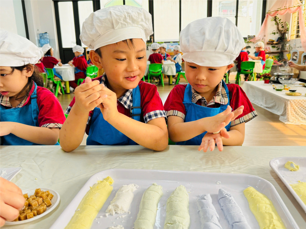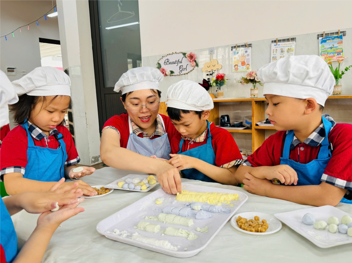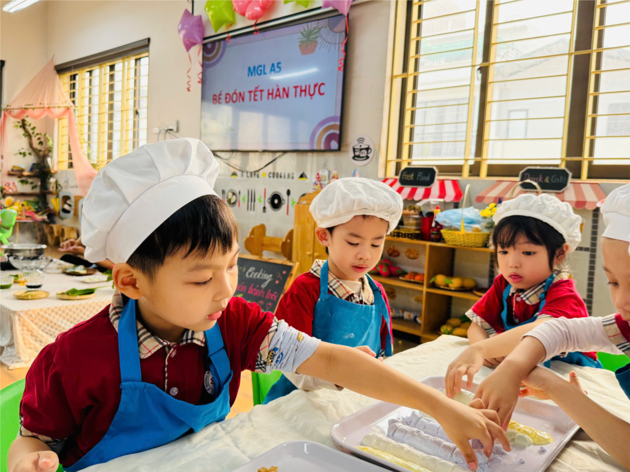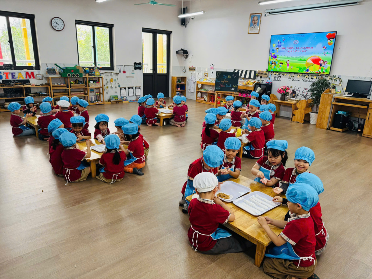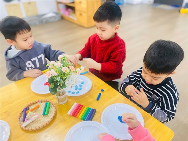 Các bé yêu lớp B3 tham gia hoạt động trải nghiệm "Nặn bánh trôi" nhân ngày Tết Hàn Thực.