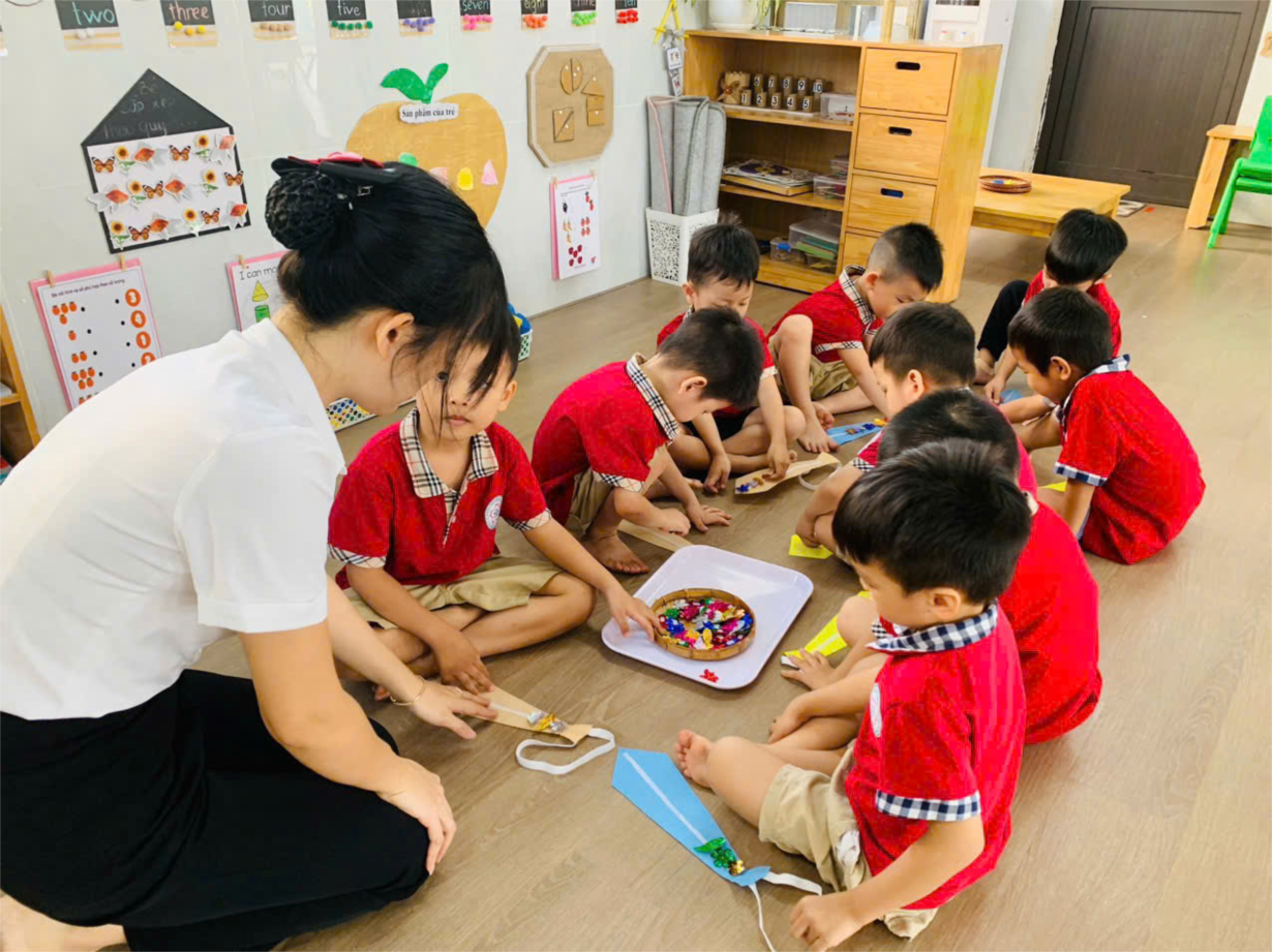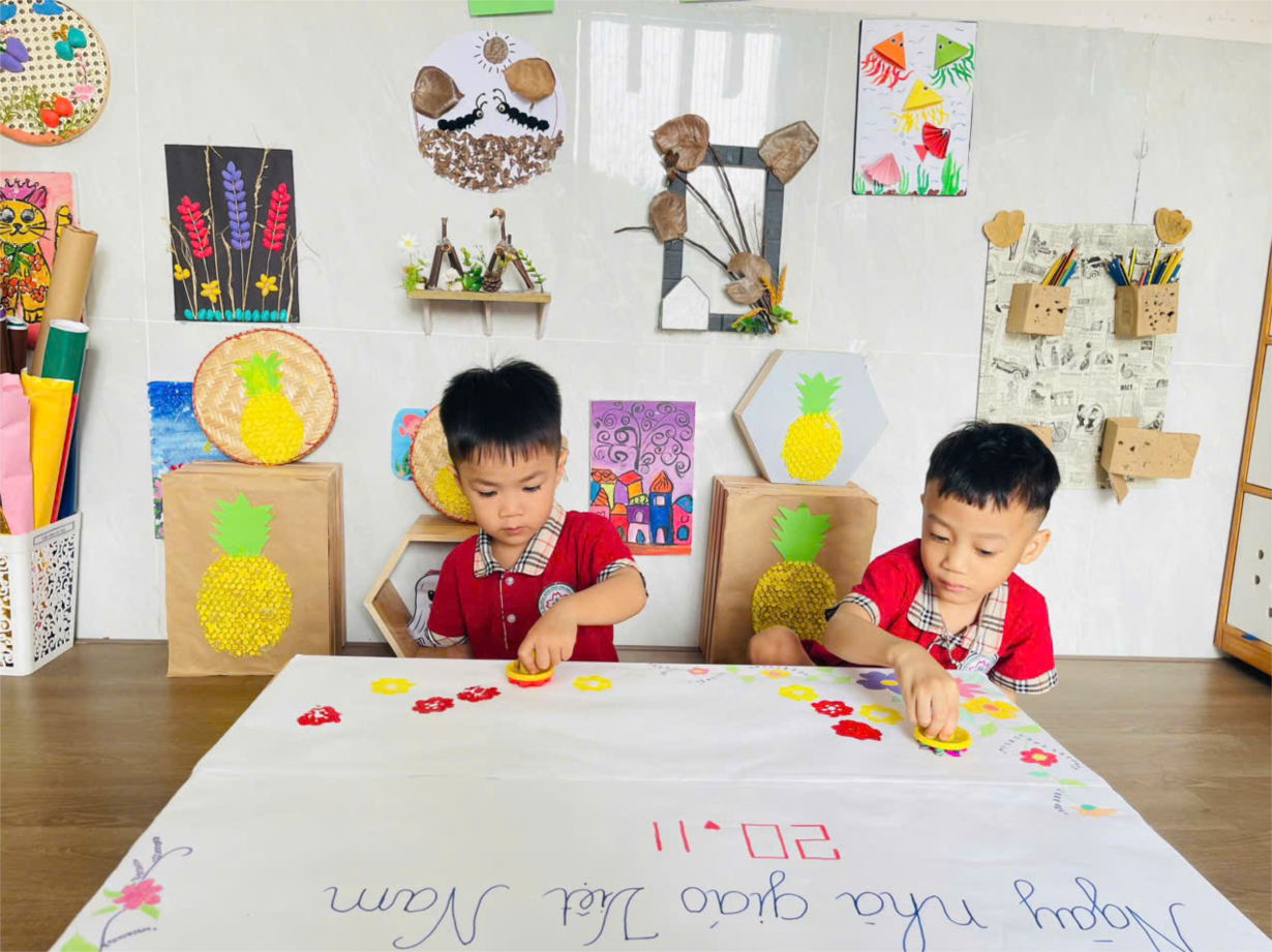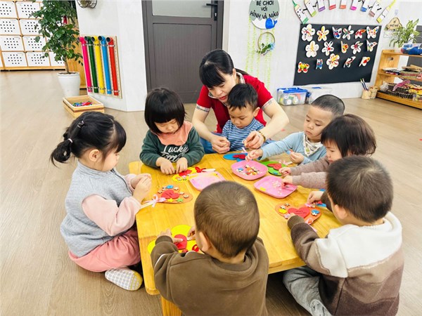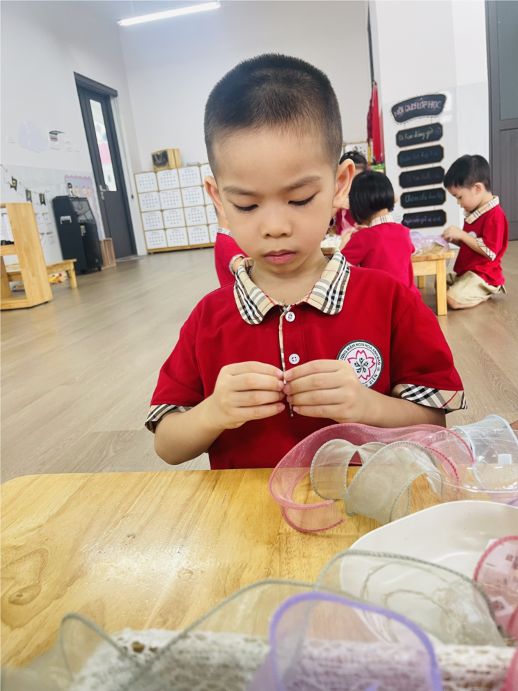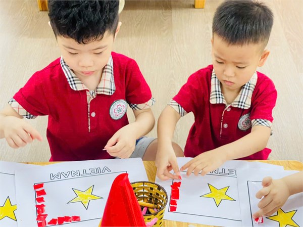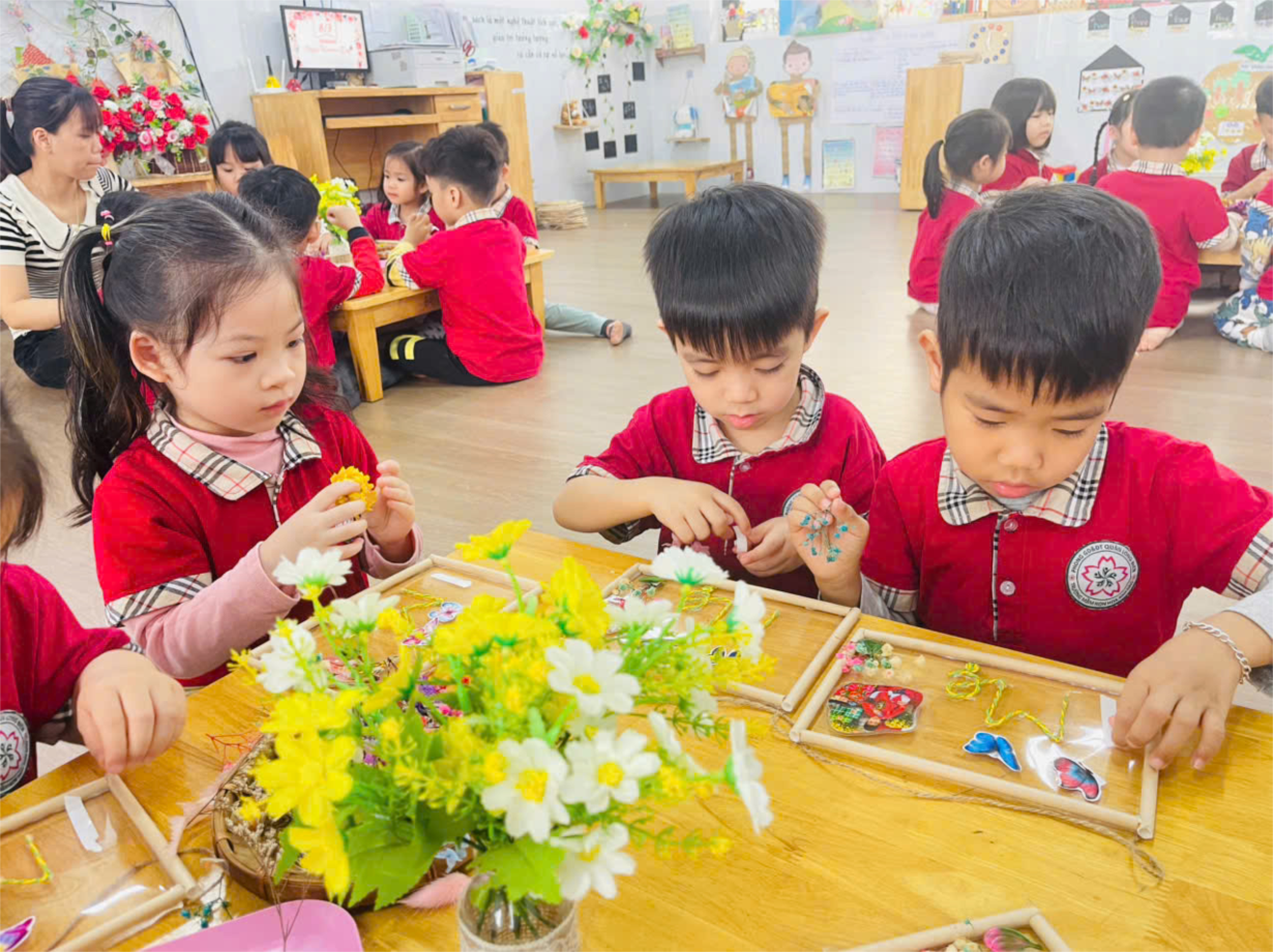 Hoạt động Làm vòng tay Việt Nam của các bé lớp MGN B3
