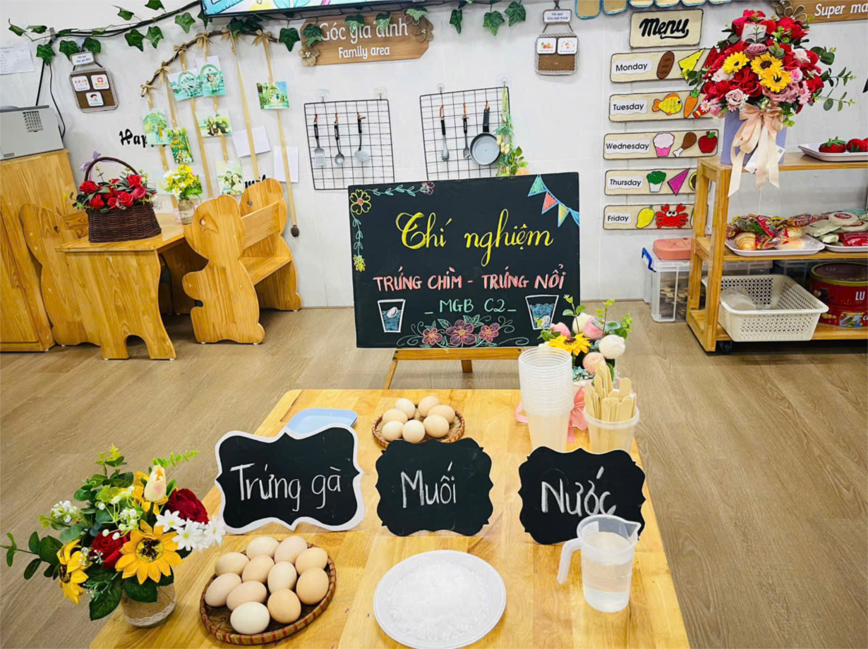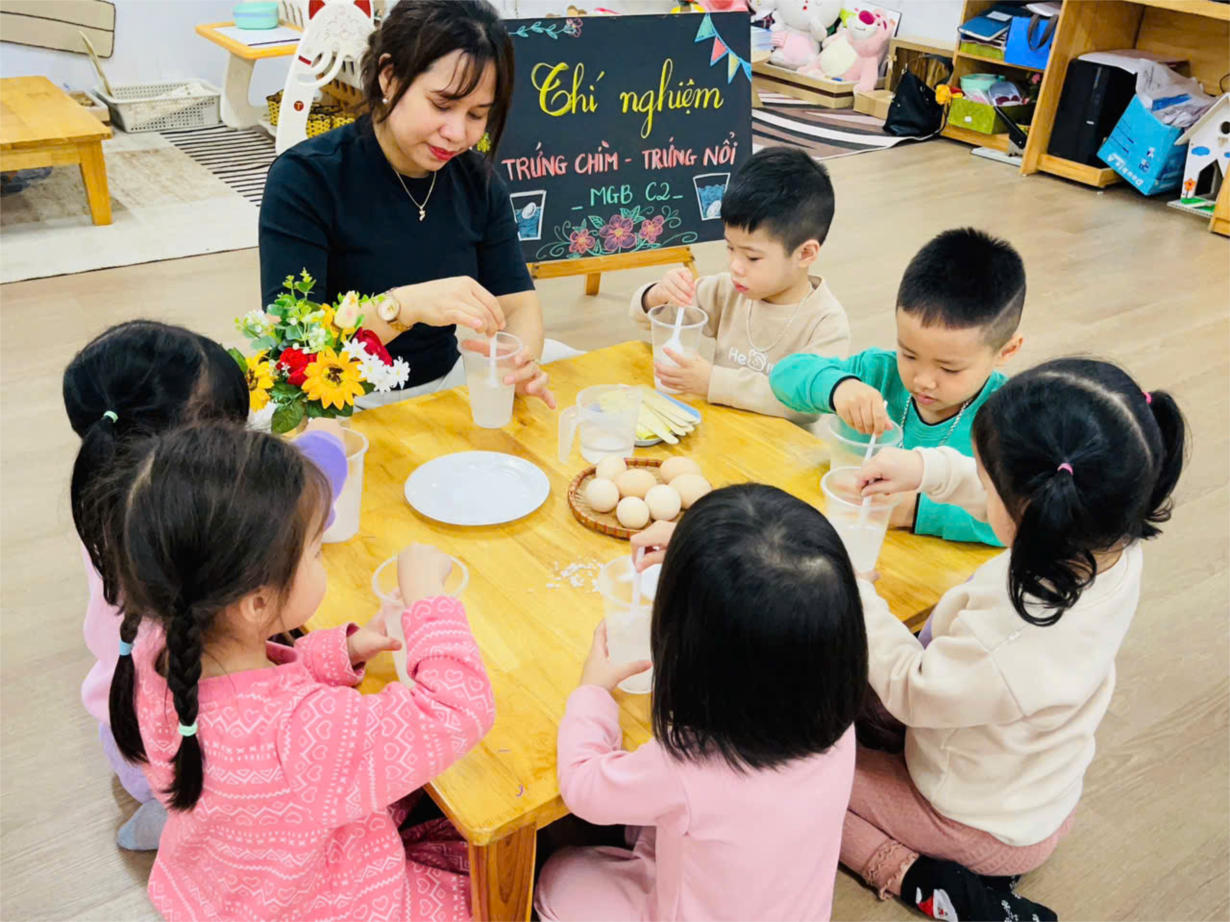 Hoạt động thí nghiệm " Trứng chìm- trứng nổi" của cô trò lớp C2.