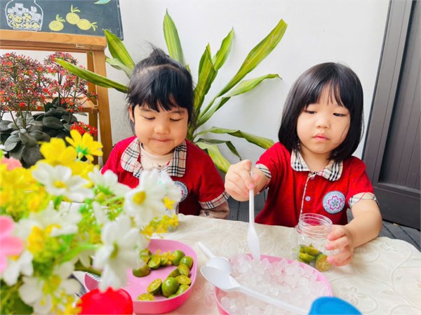 Hoạt động" Làm hoa quả dầm" của lớp bé C1.
