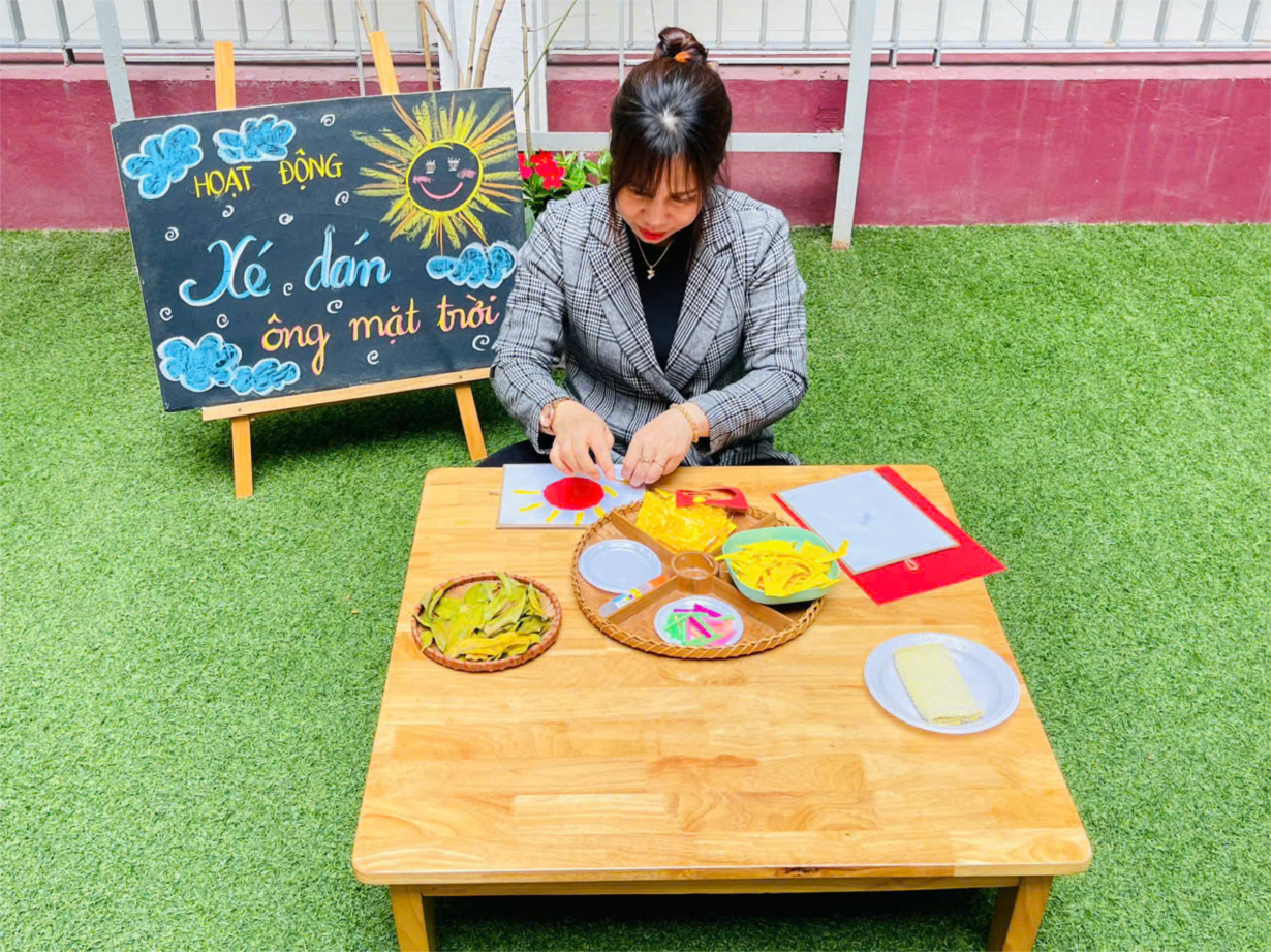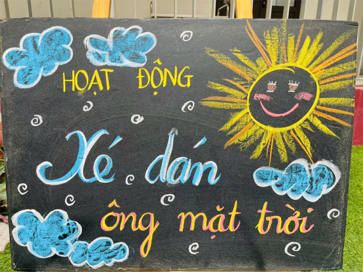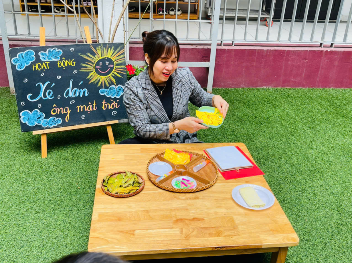 Hoạt động " Xé dán ông mặt trời" của cô trò lớp bé C2.