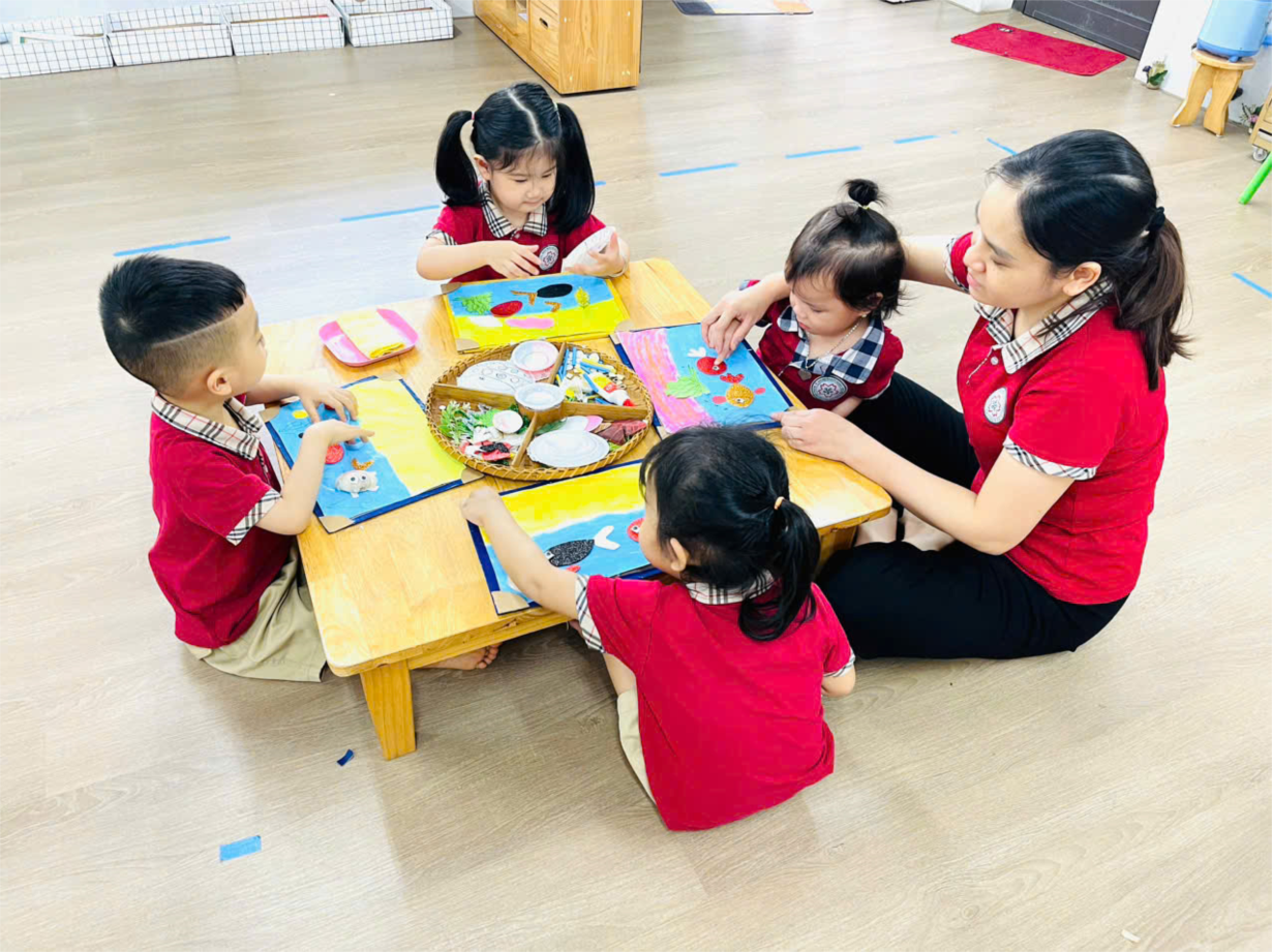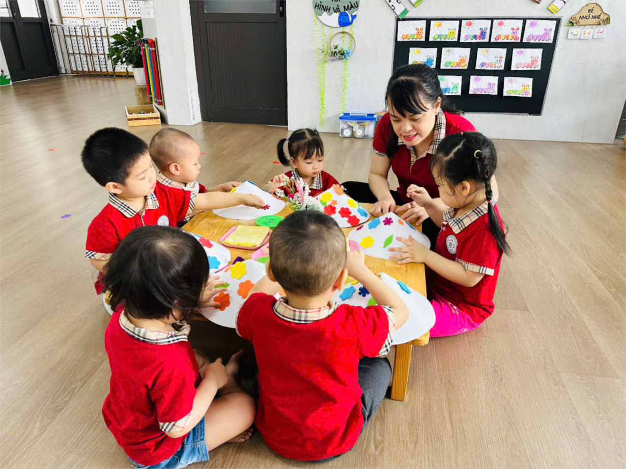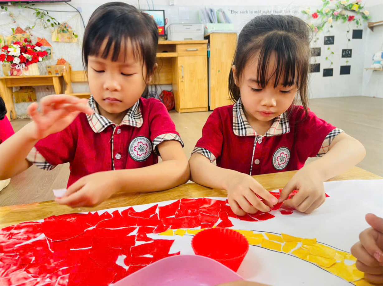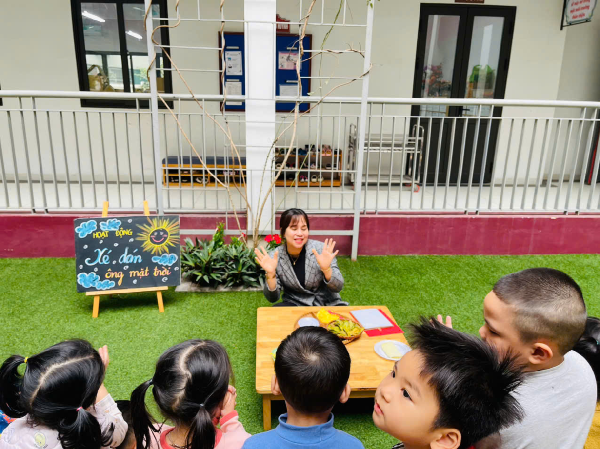 Hoạt động " Xé dán ông mặt trời" của cô trò lớp bé C2.