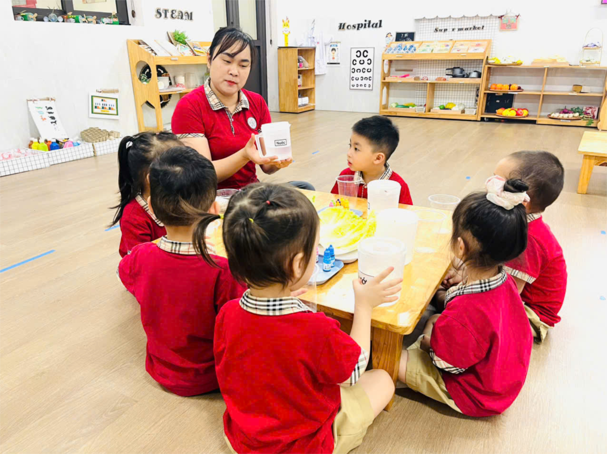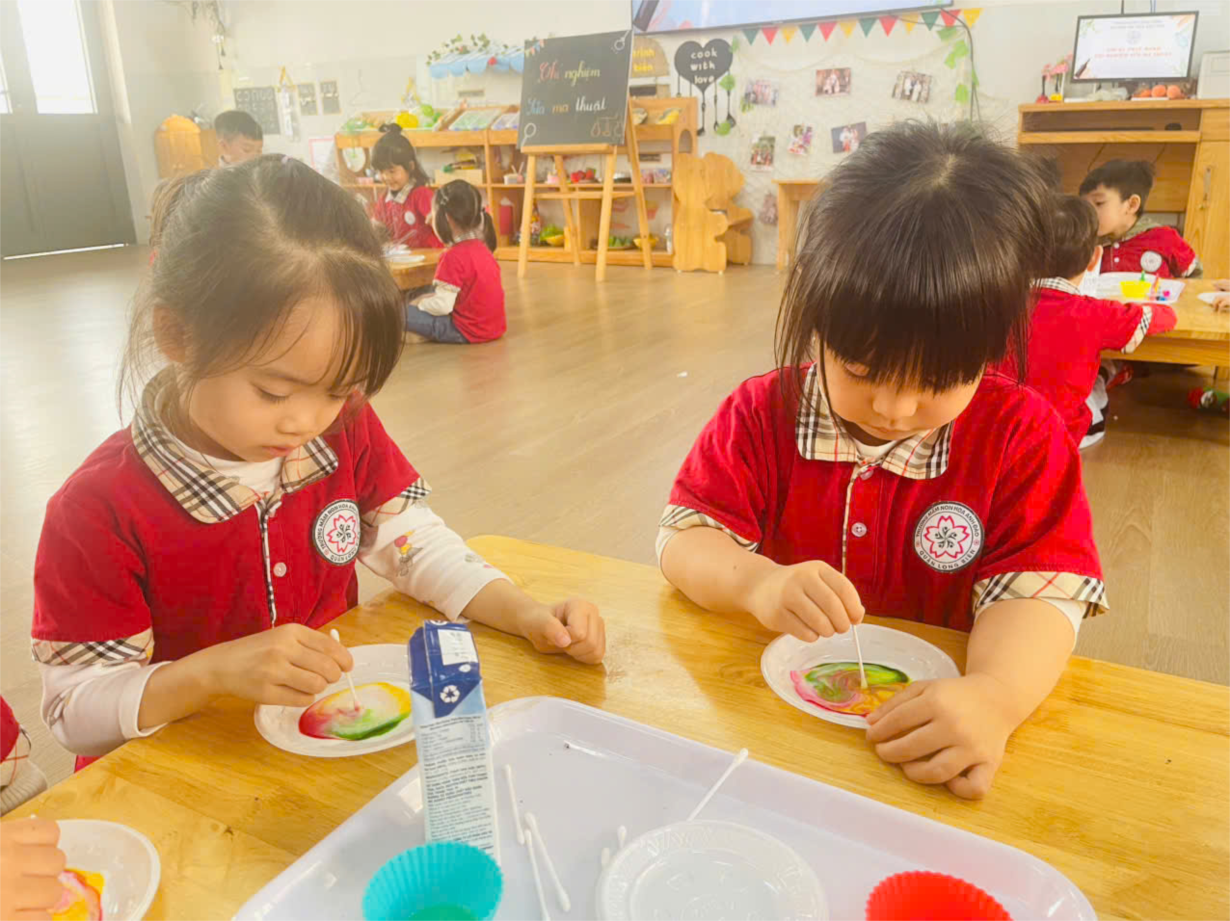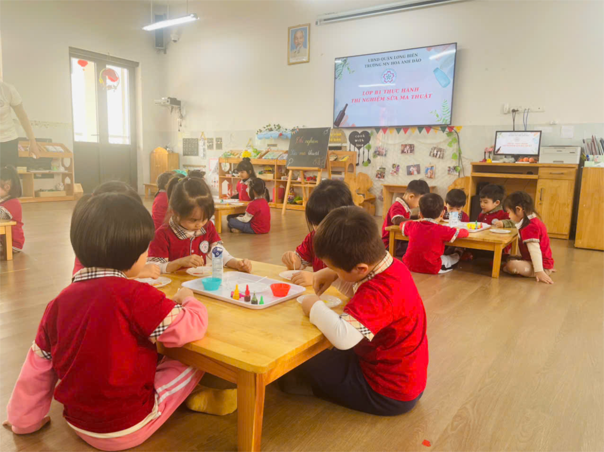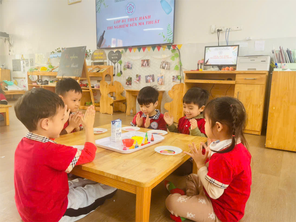 Thí nghiệm thú vị với sữa của lớp mẫu giáo nhỡ B1