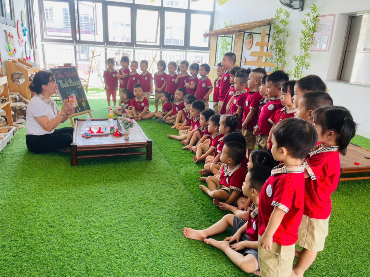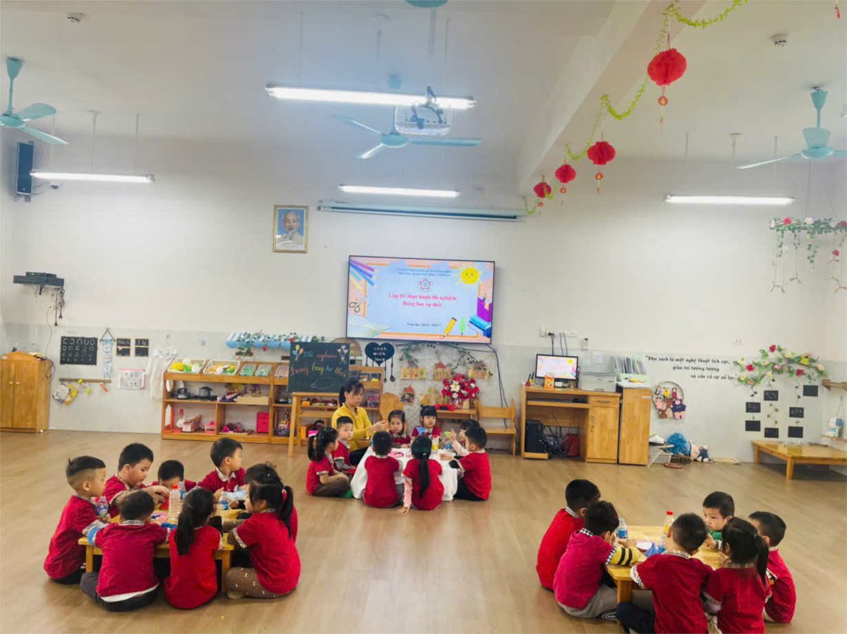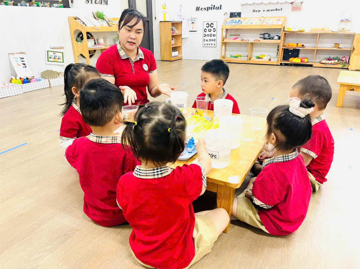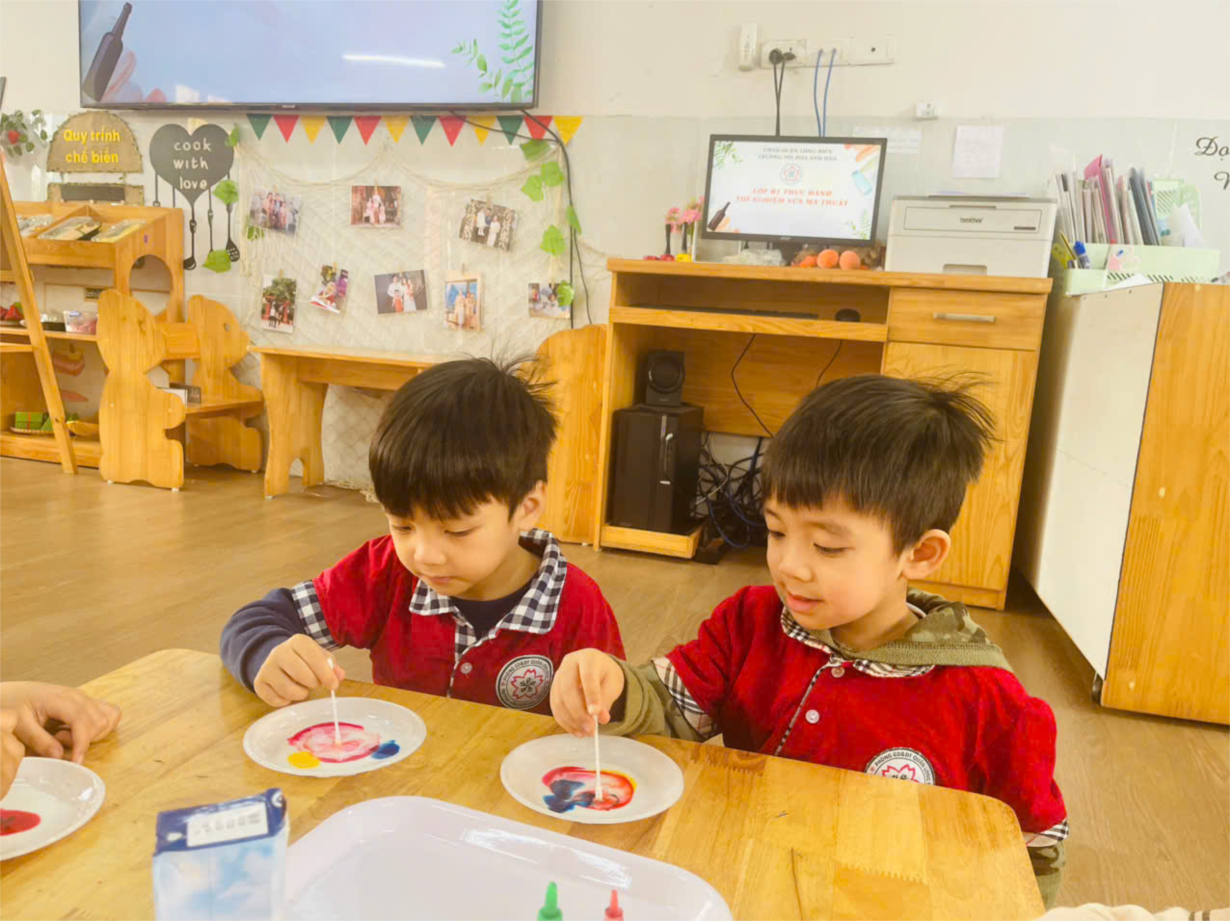 Thí nghiệm thú vị với sữa của lớp mẫu giáo nhỡ B1