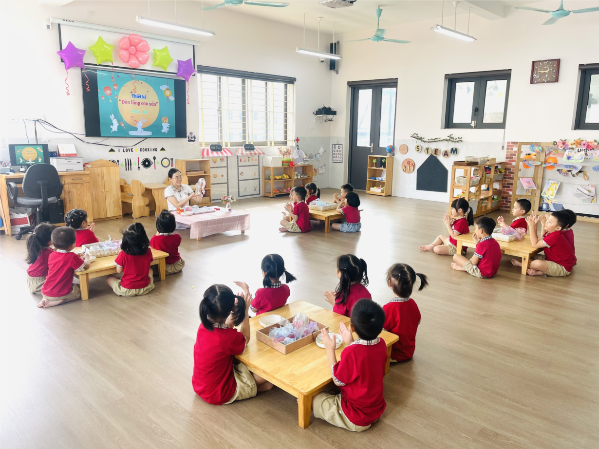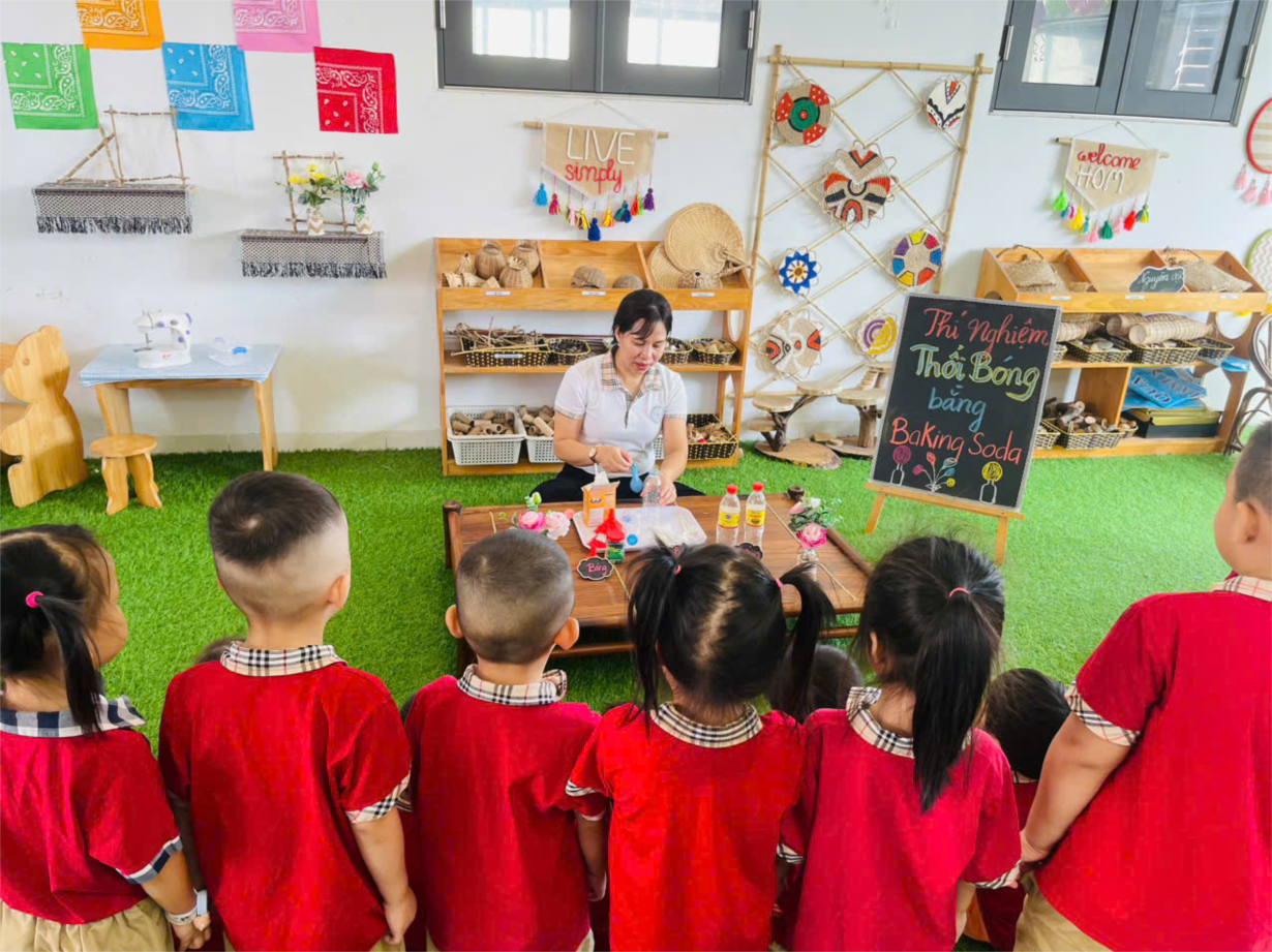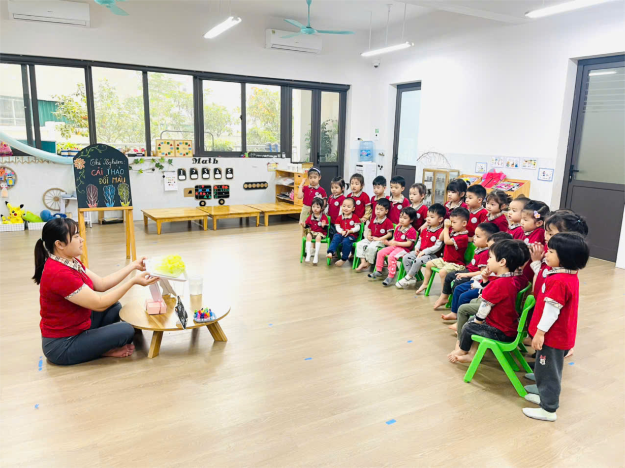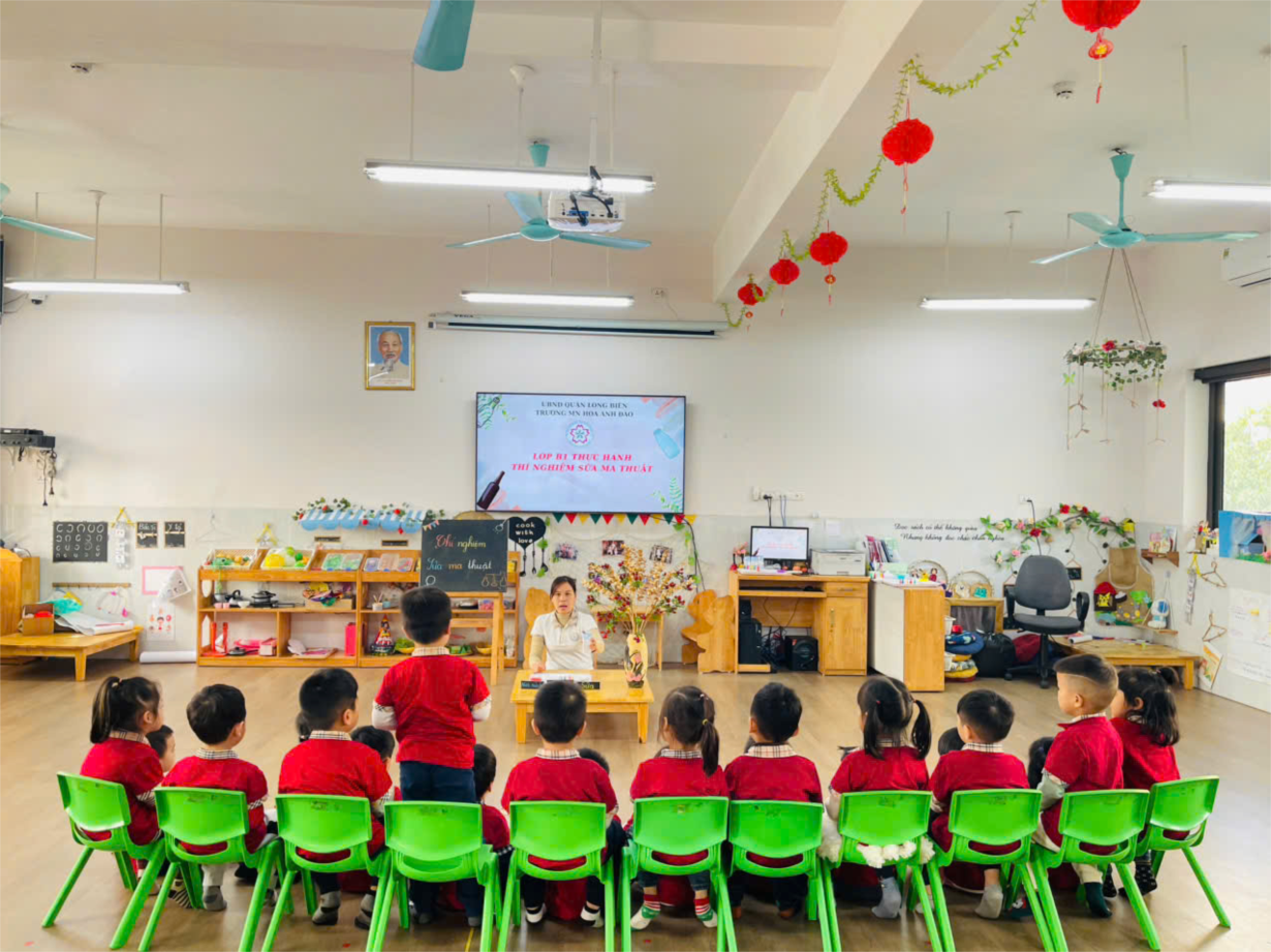 Thí nghiệm thú vị với sữa của lớp mẫu giáo nhỡ B1
