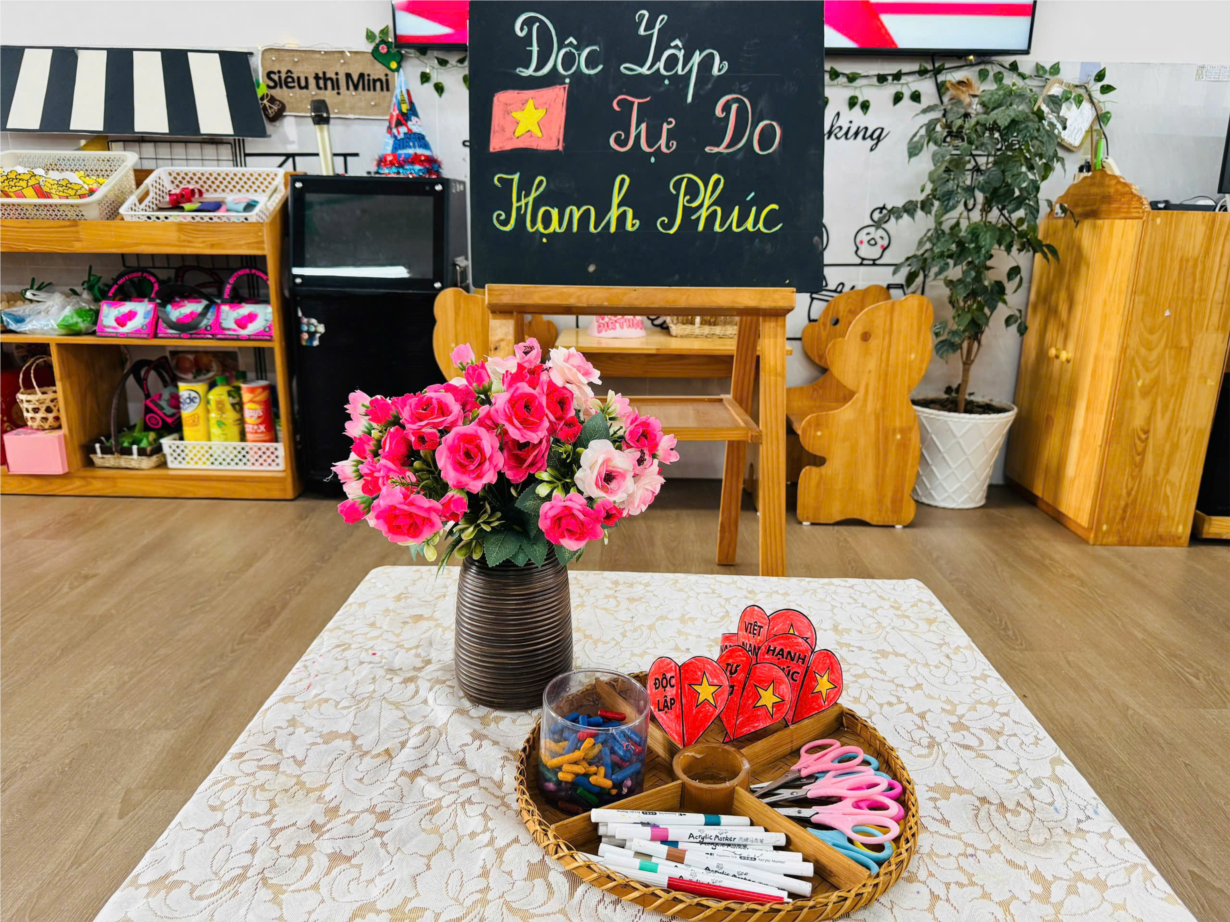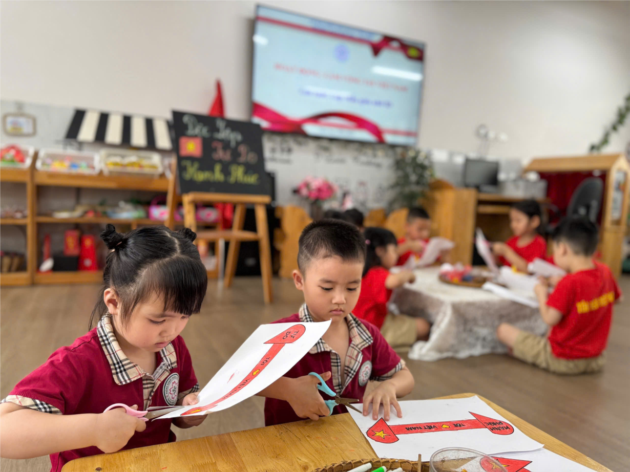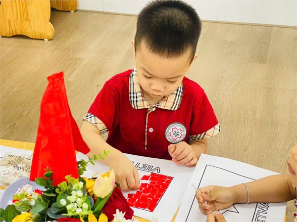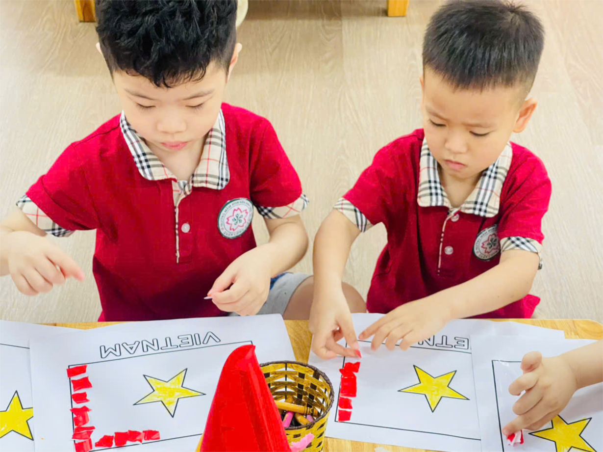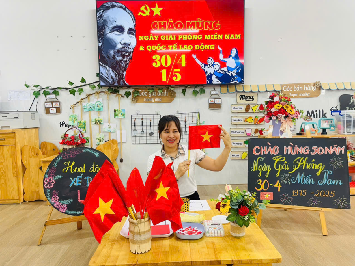 LỚP B1 CHUNG TAY DÁN LÁ CỜ, CỜ ĐẢNG, BẢN ĐỒ VIỆT NAM CHÀO MỪNG NGÀY 30/4