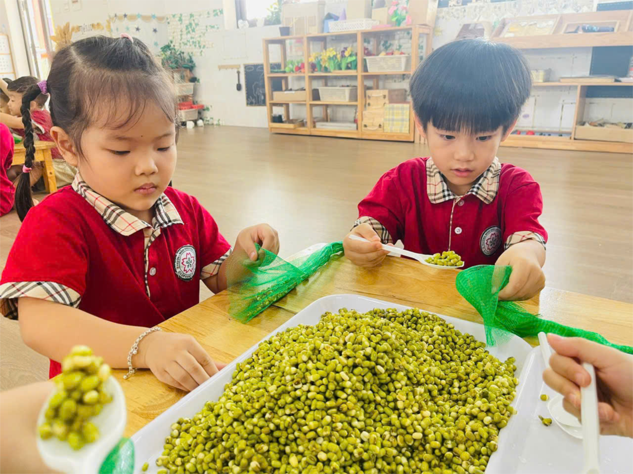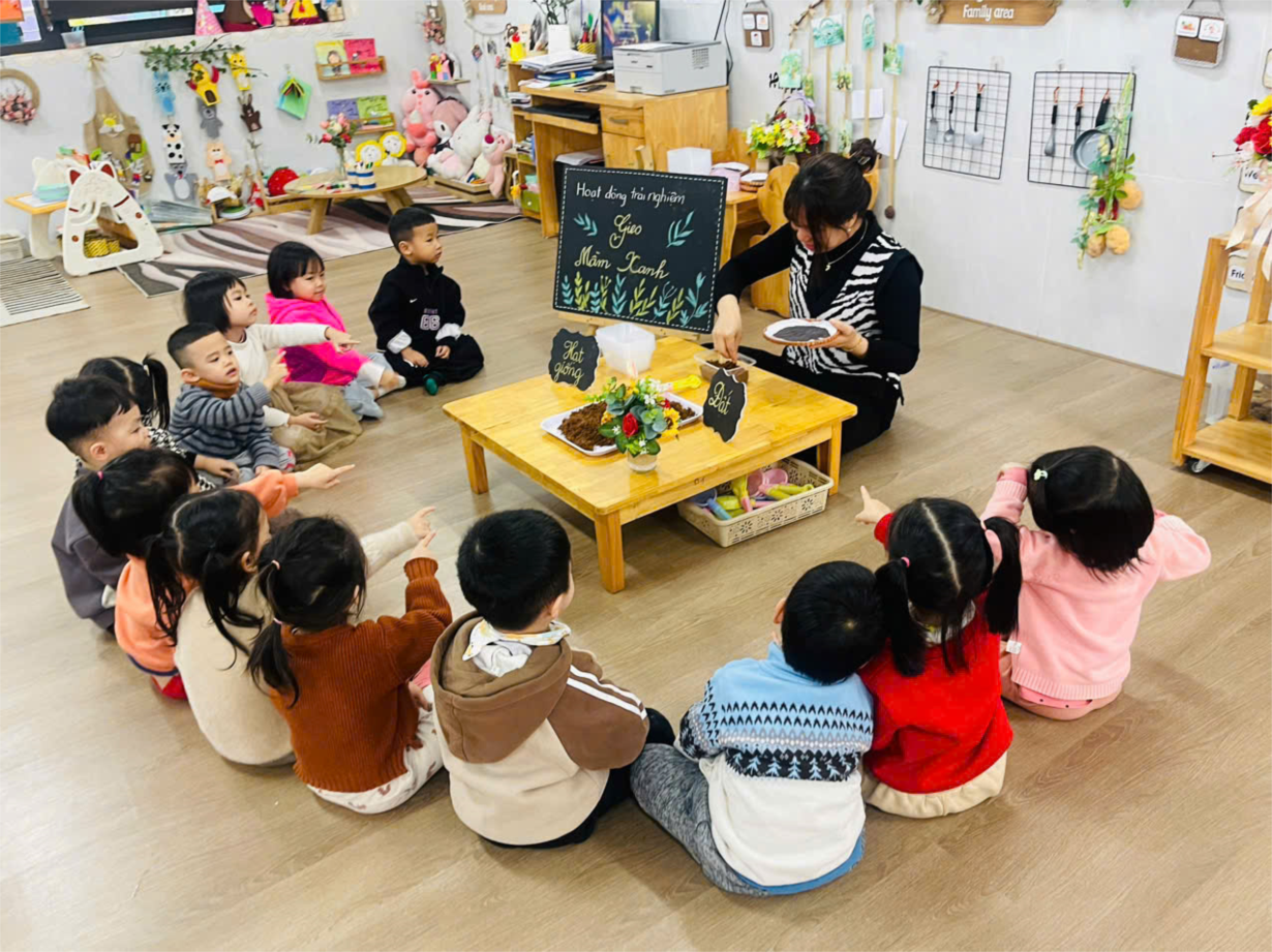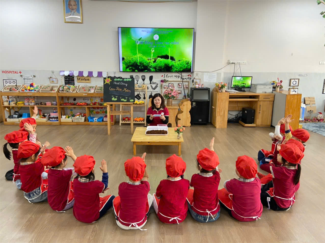 Các bạn nhỏ lớp B4 reo hạt rau mầm