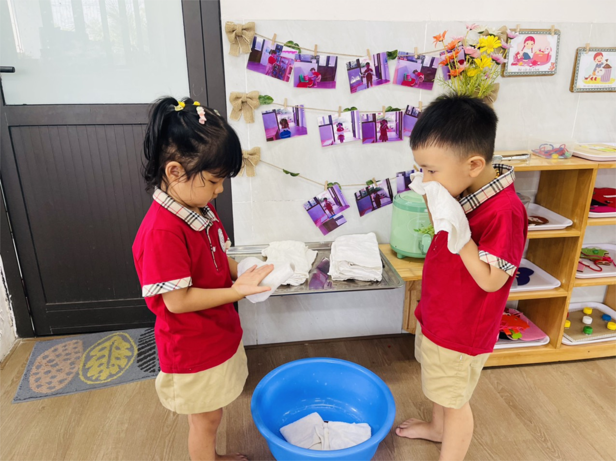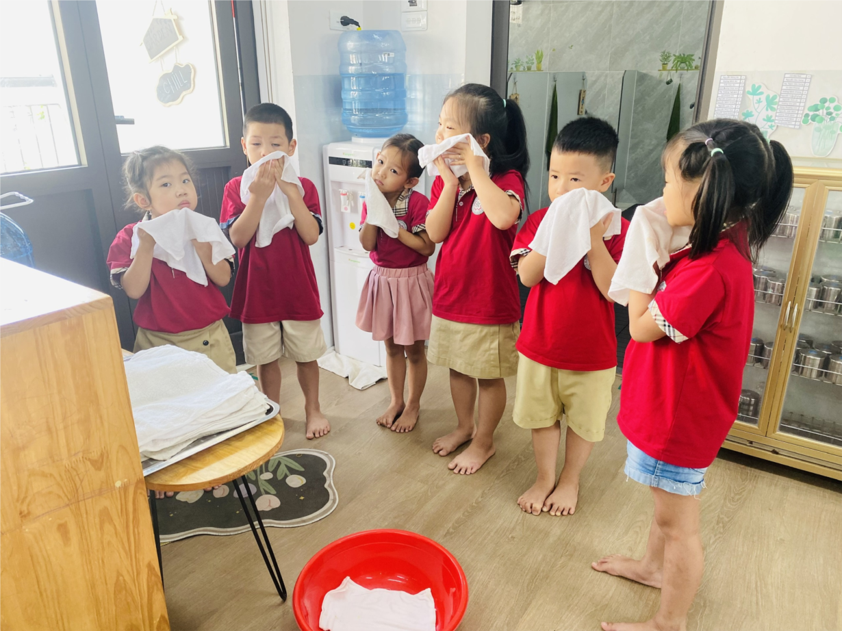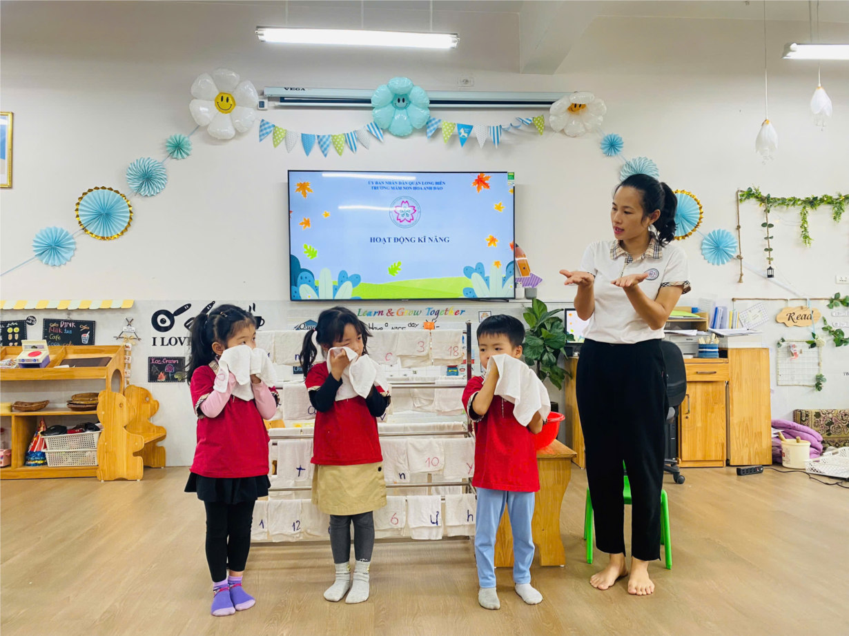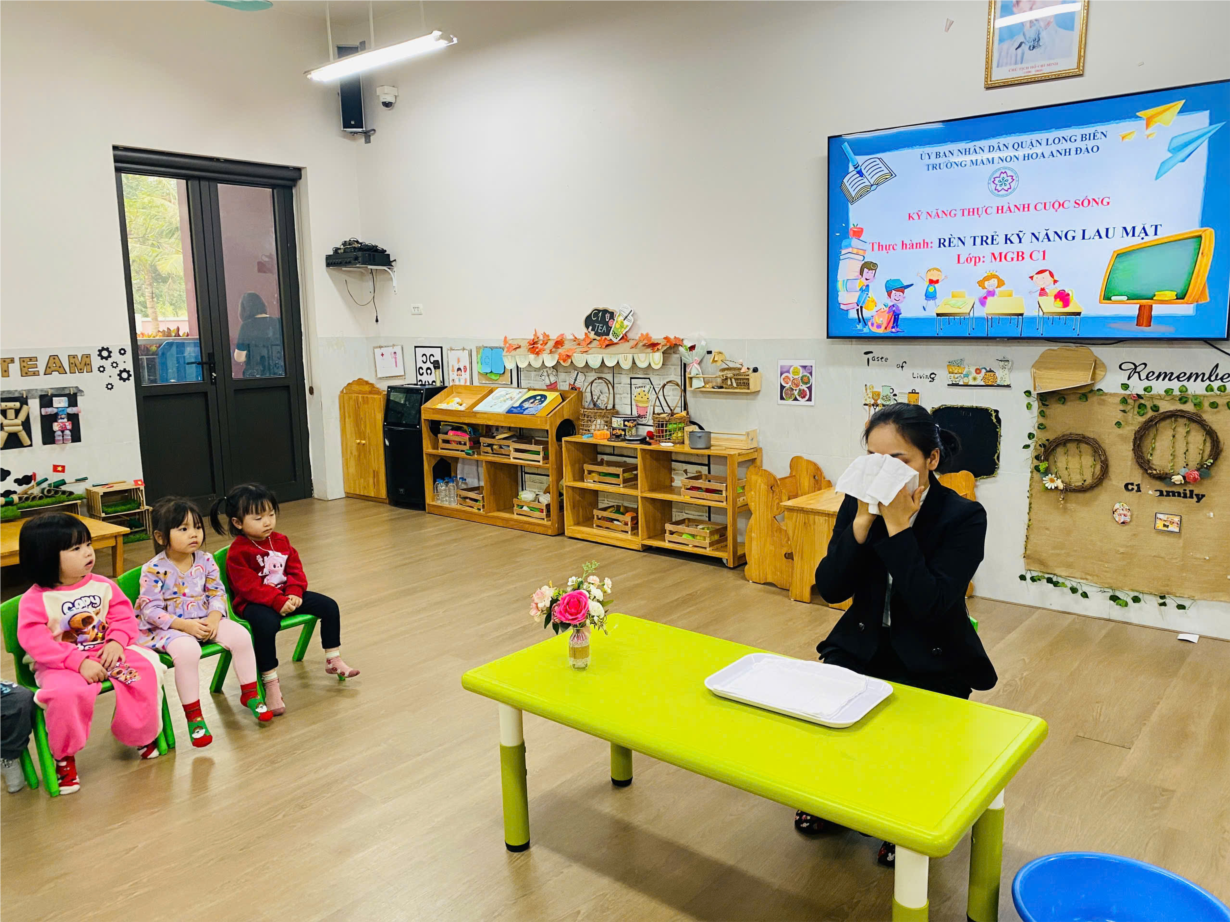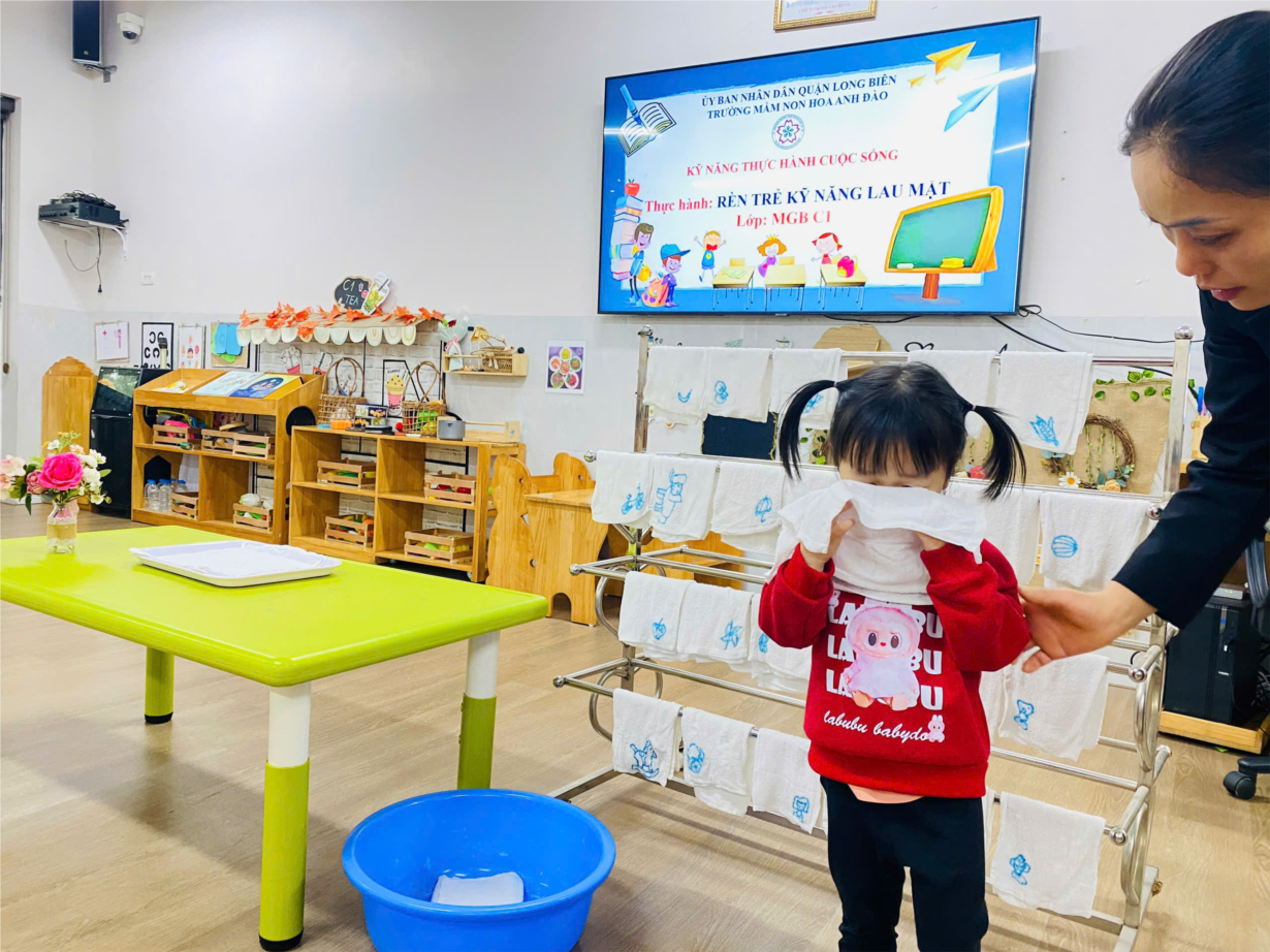 Hoạt động " rèn kĩ năng lau mặt" lớp C1.