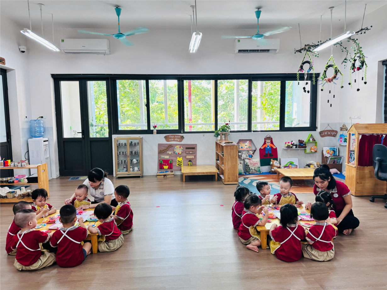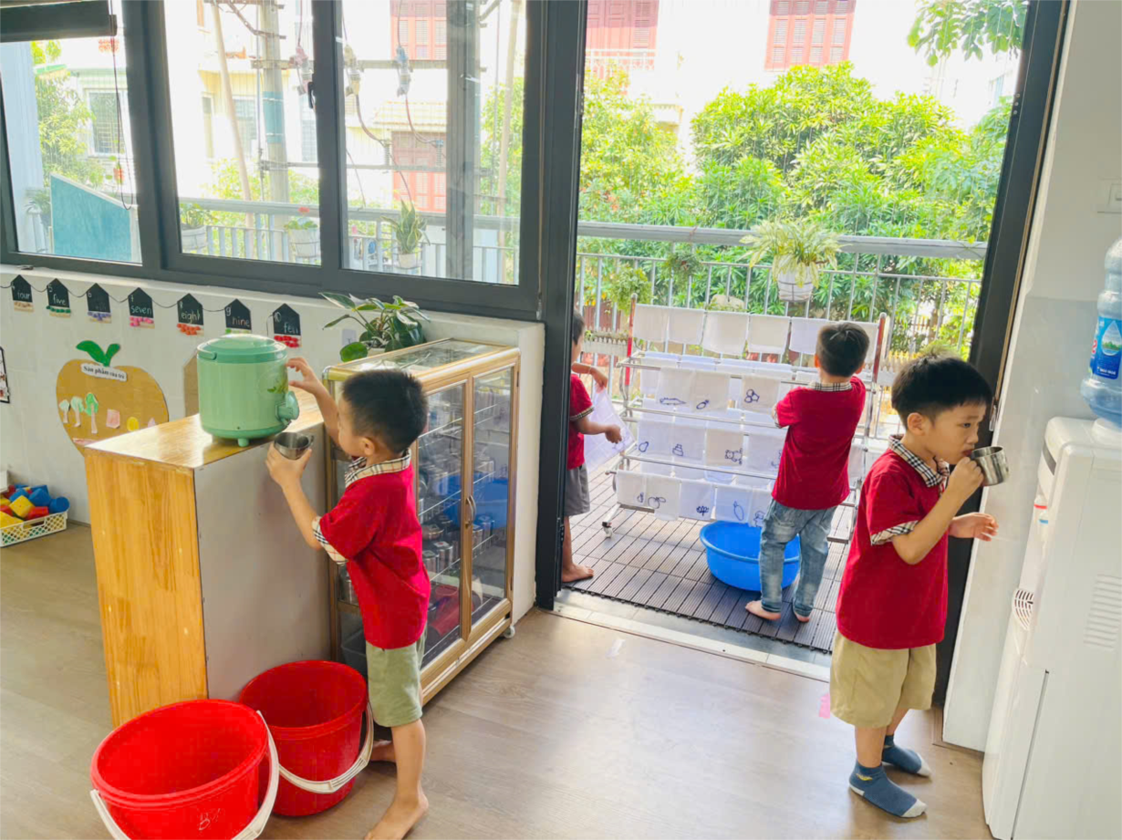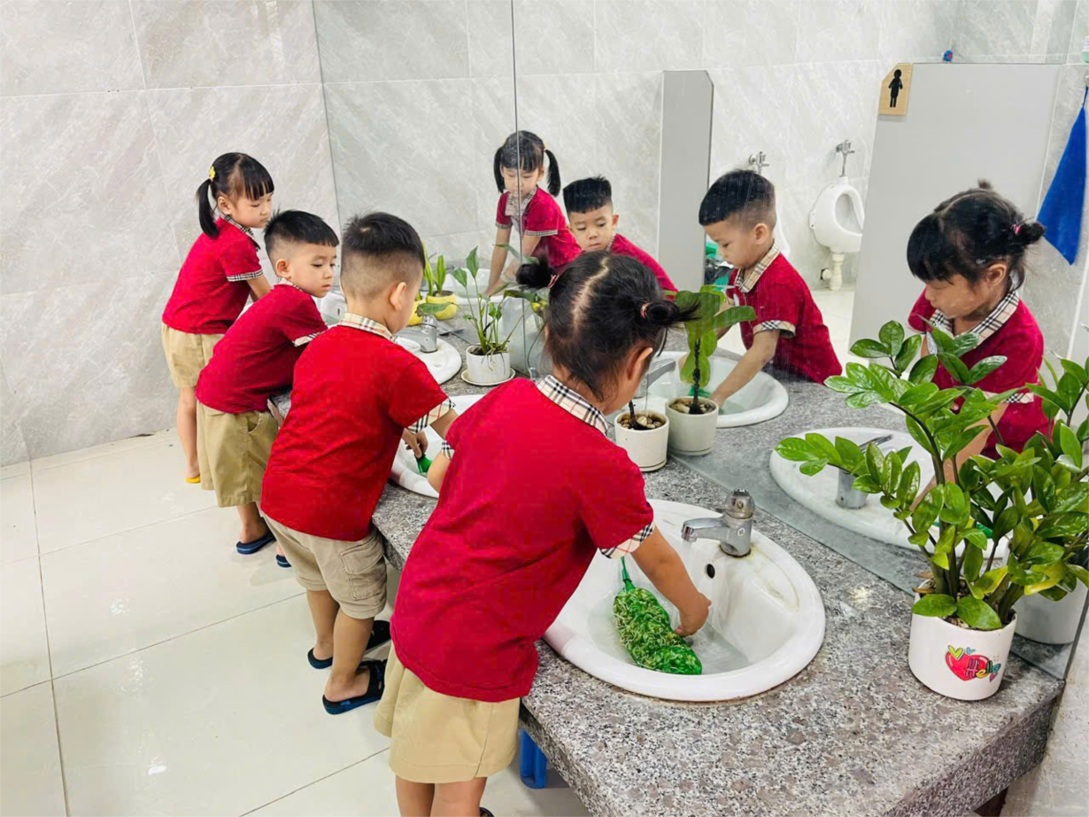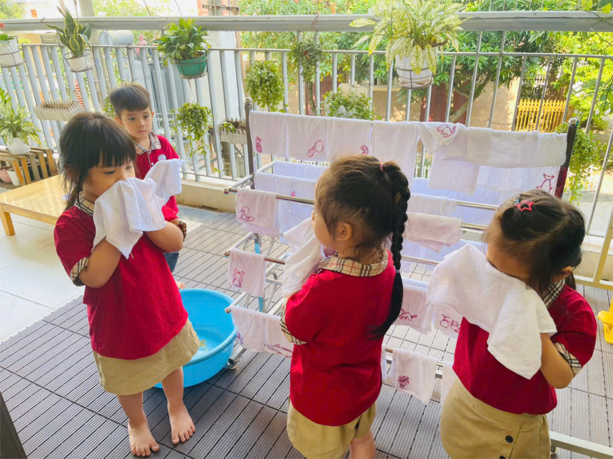Lớp B1 rèn trẻ các kỹ năng tự phục vụ