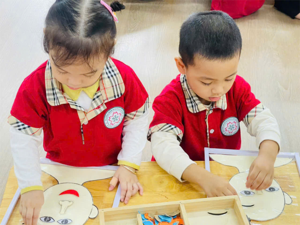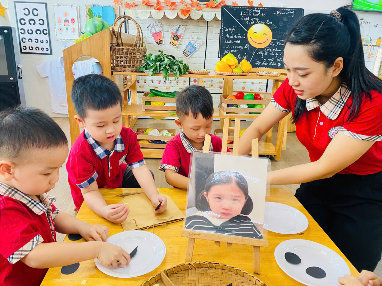 Hoạt động "Tạo hình khuôn mặt" của các bé yêu lớp NT D2