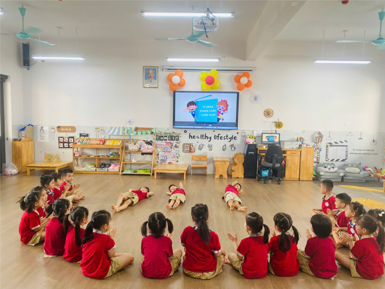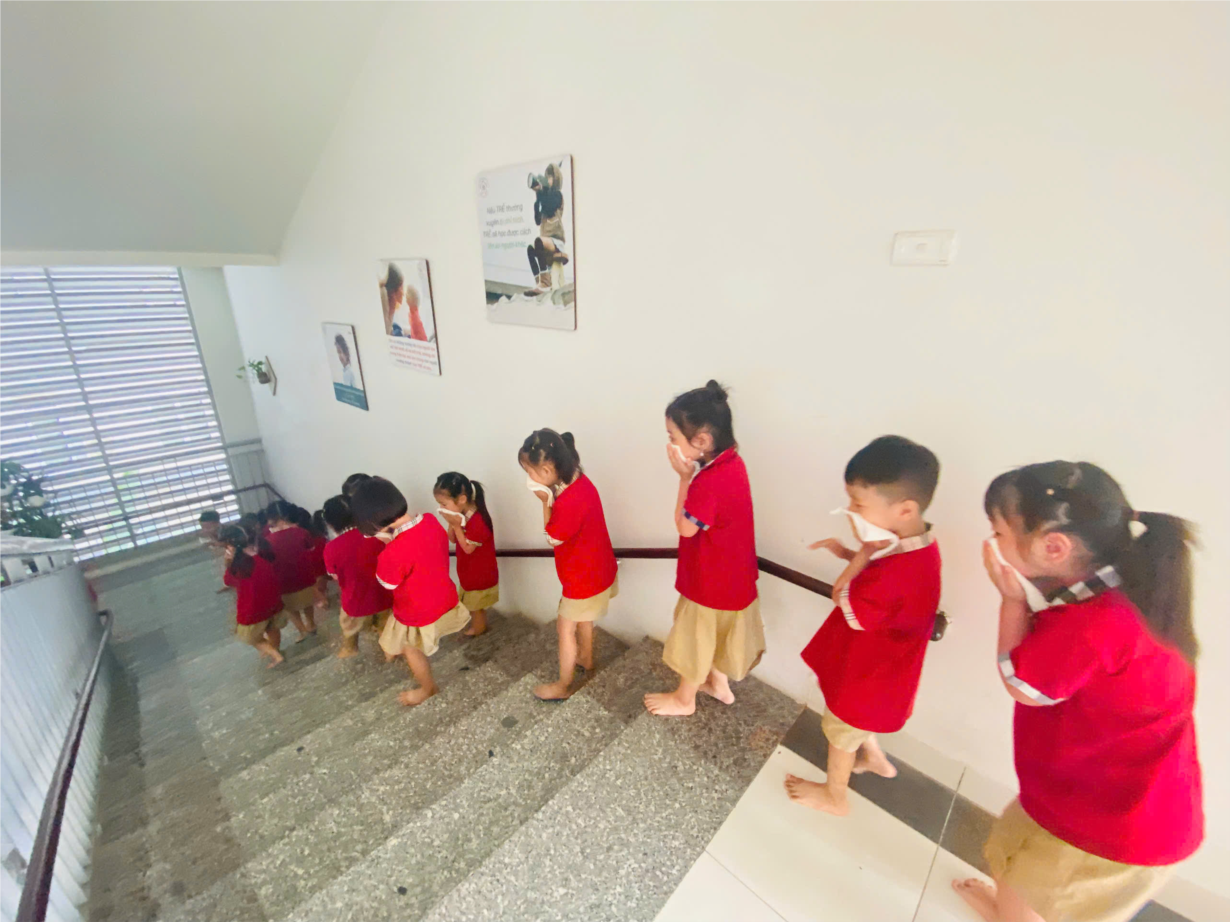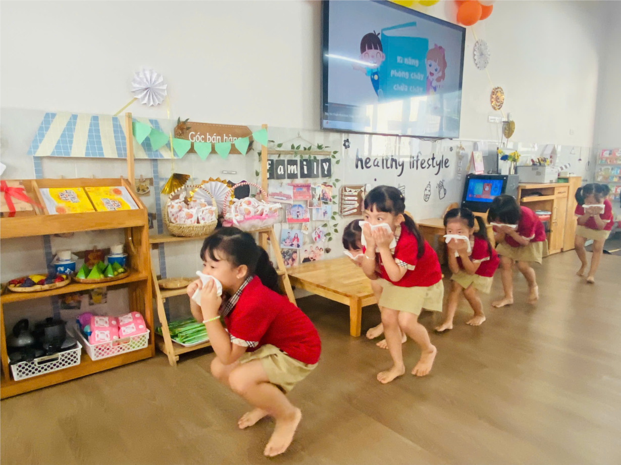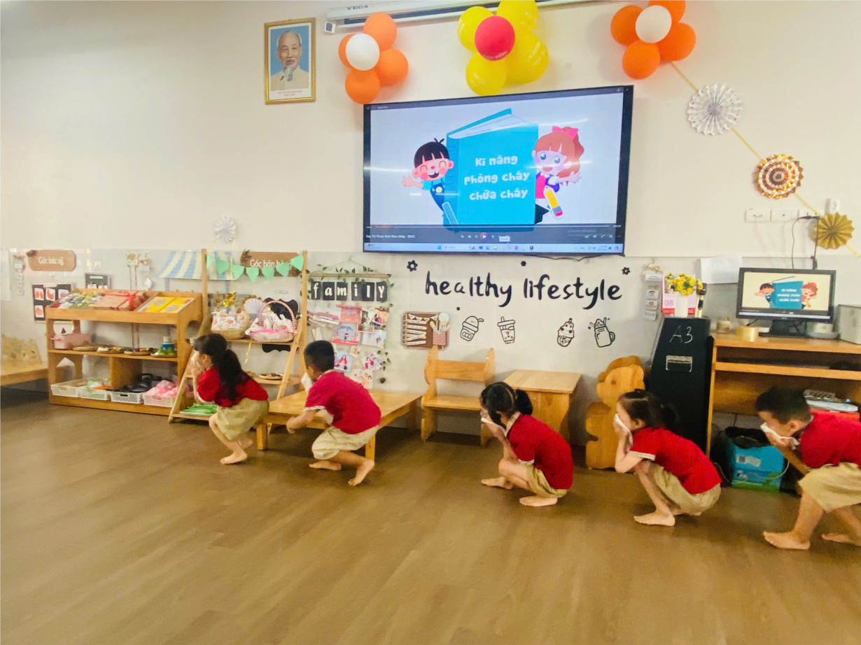 Hoạt động dạy trẻ kỹ năng thoát hiểm khi xảy ra hoả hoạn lớp A1