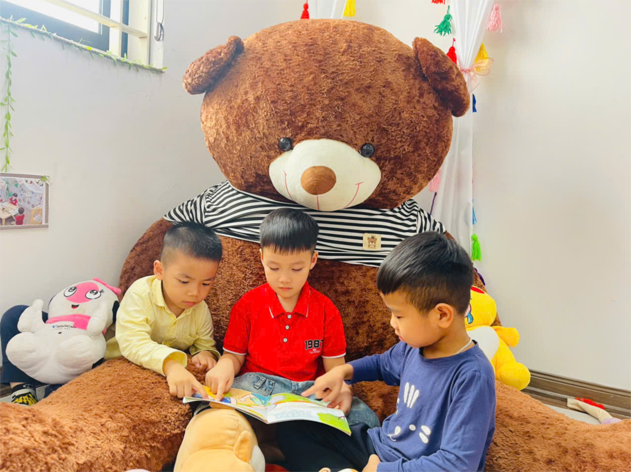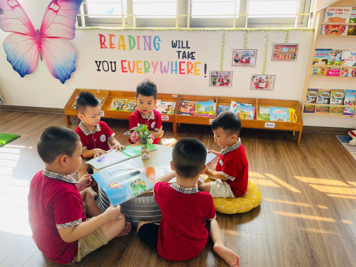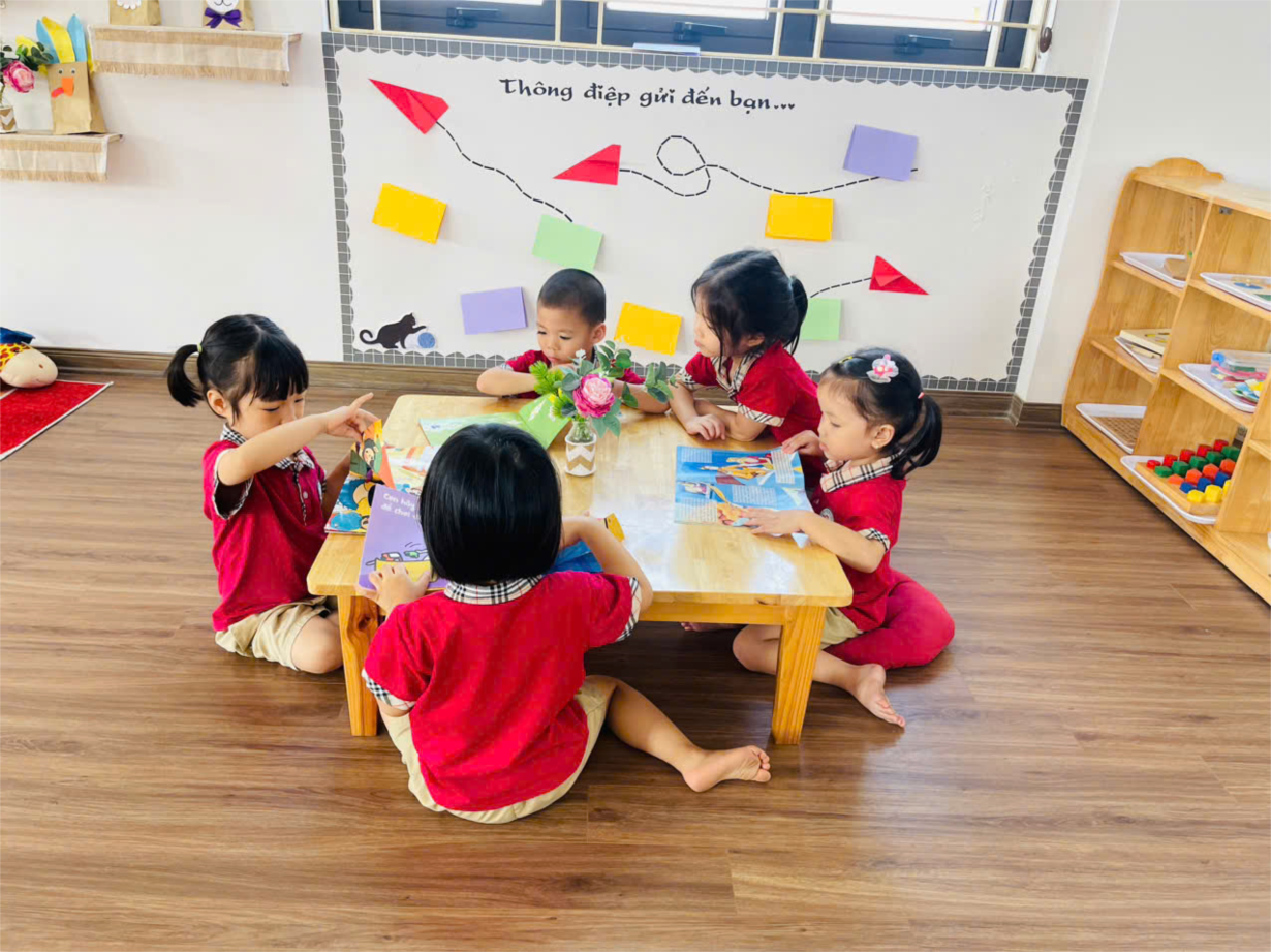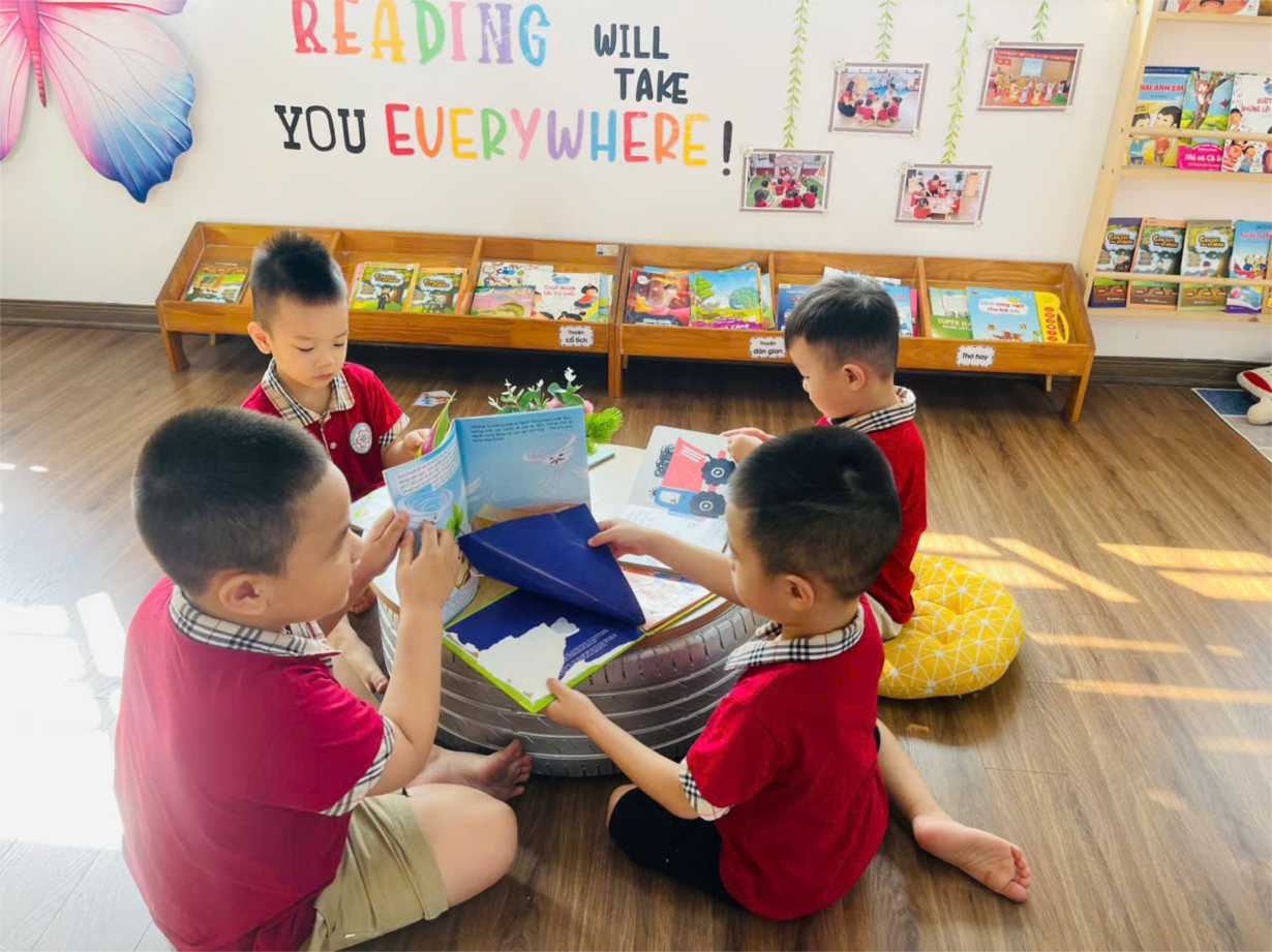 Hoạt động trên phòng thư viện của cô trò lớp bé C2.
