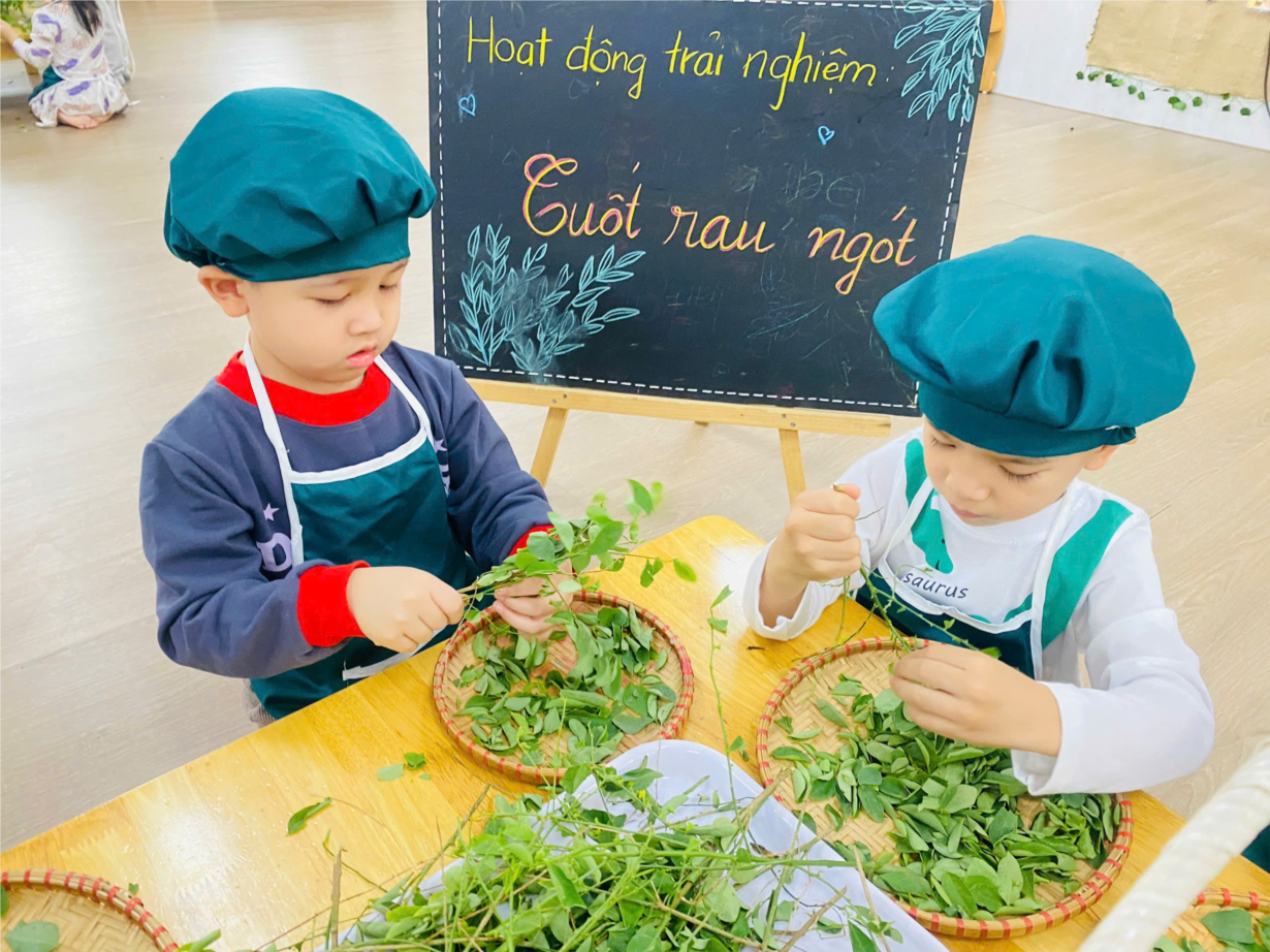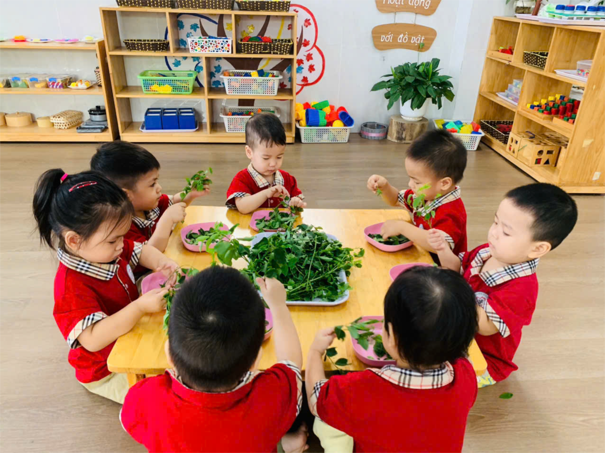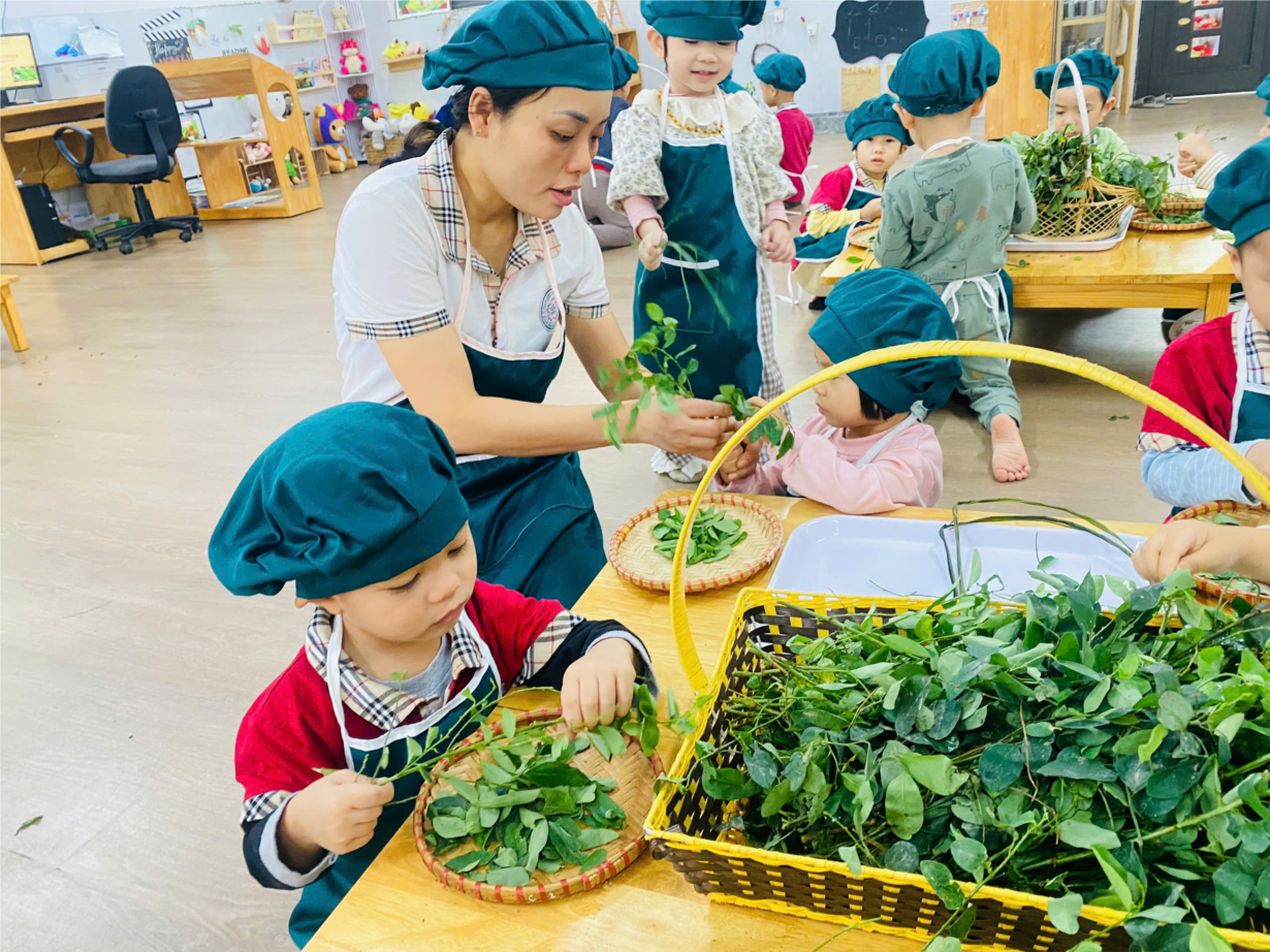 Hoạt động " Tuốt rau ngót" của các bé lớp C1.1