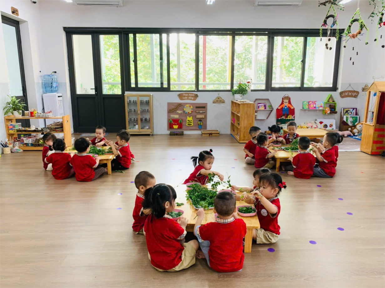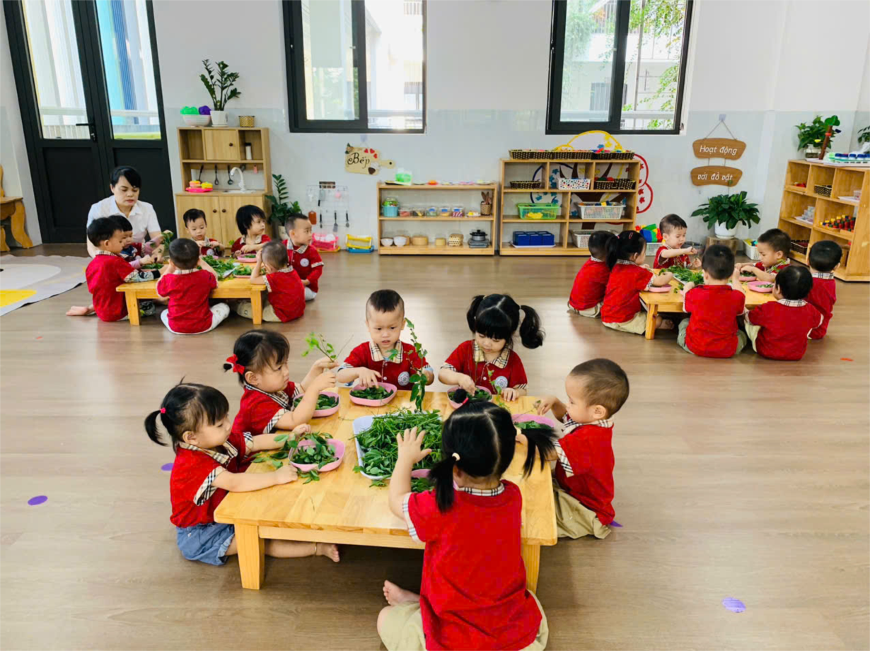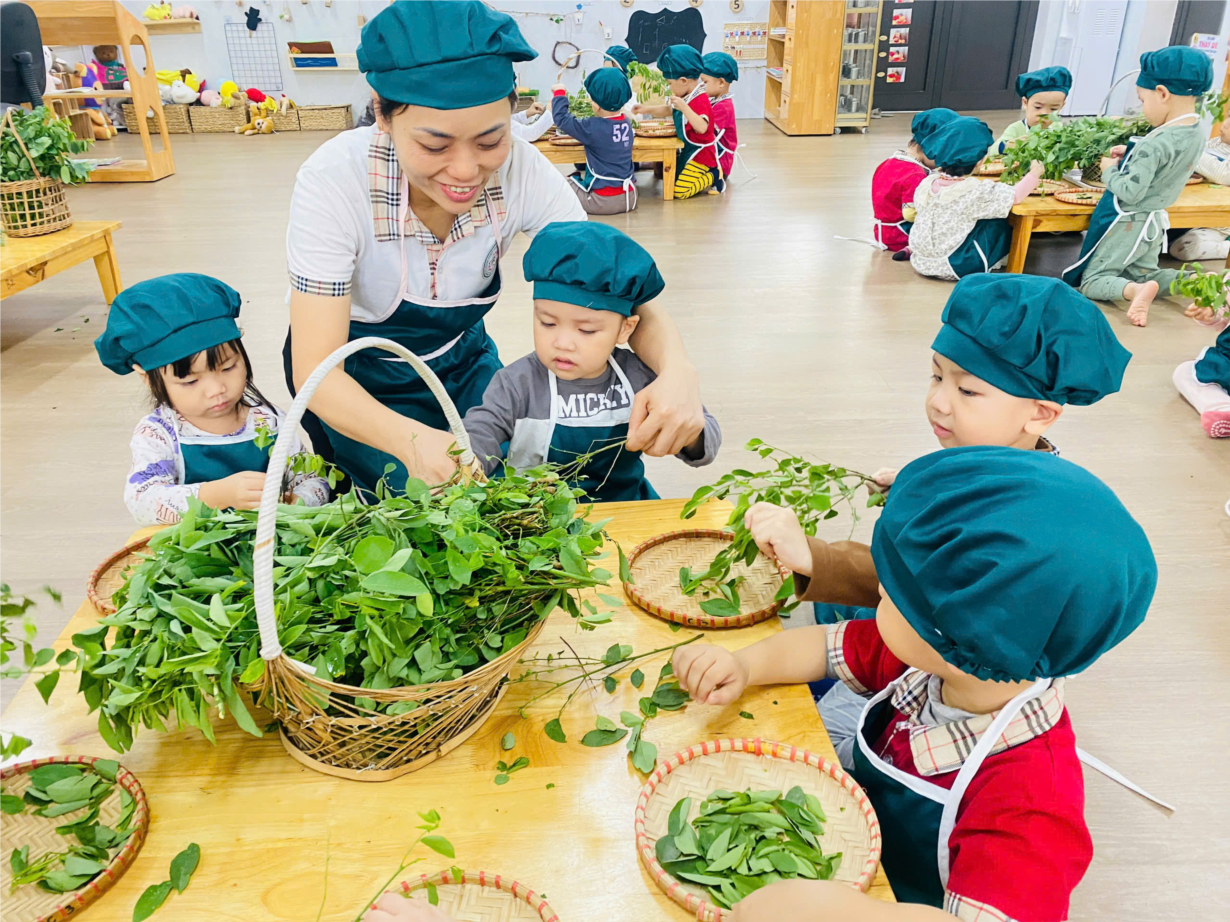 Hoạt động " Tuốt rau ngót" của các bé lớp C1.1