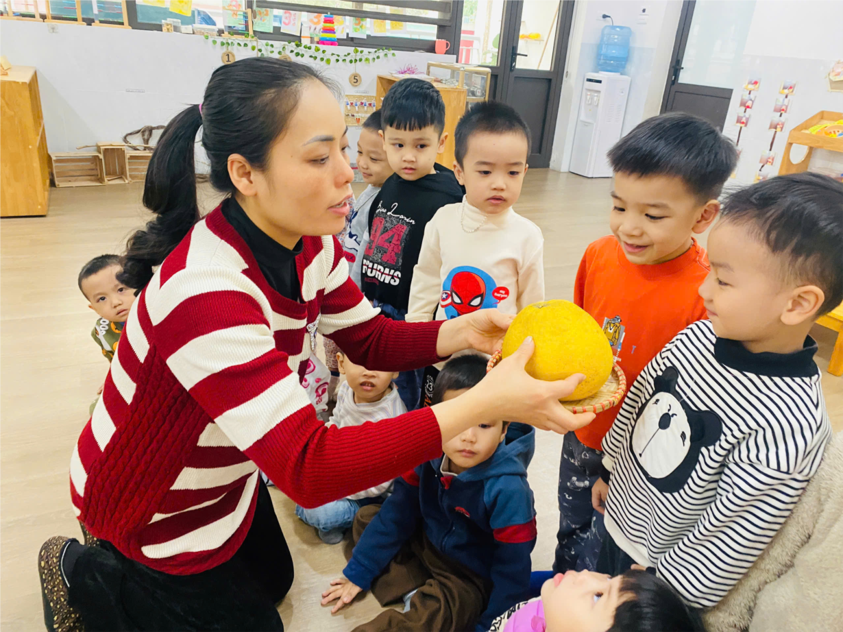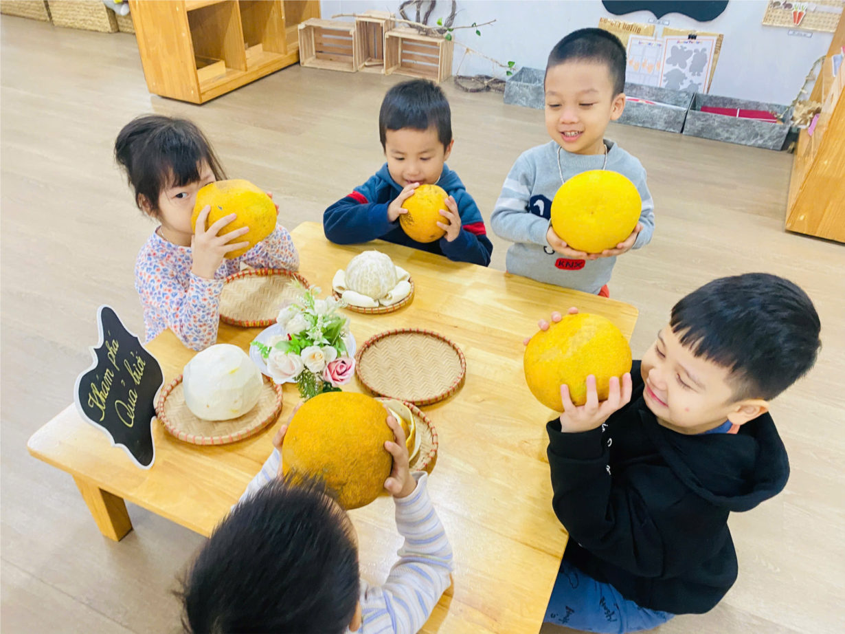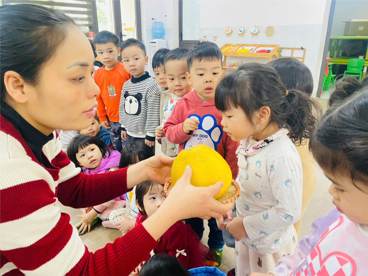 Hoạt động "Khám phá quả bưởi" của cô trò lớp bé C1.