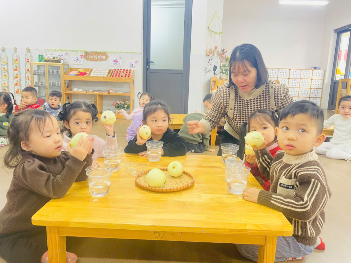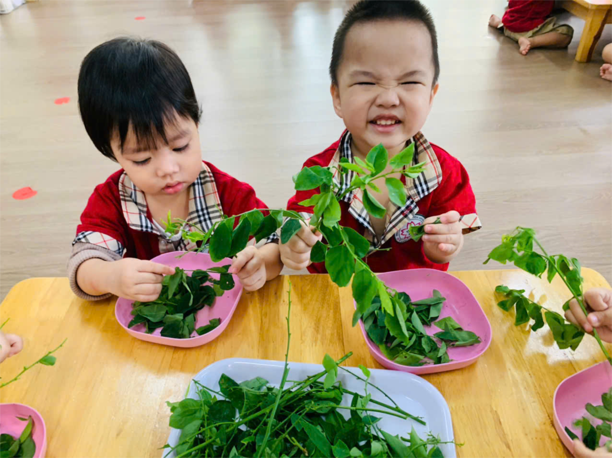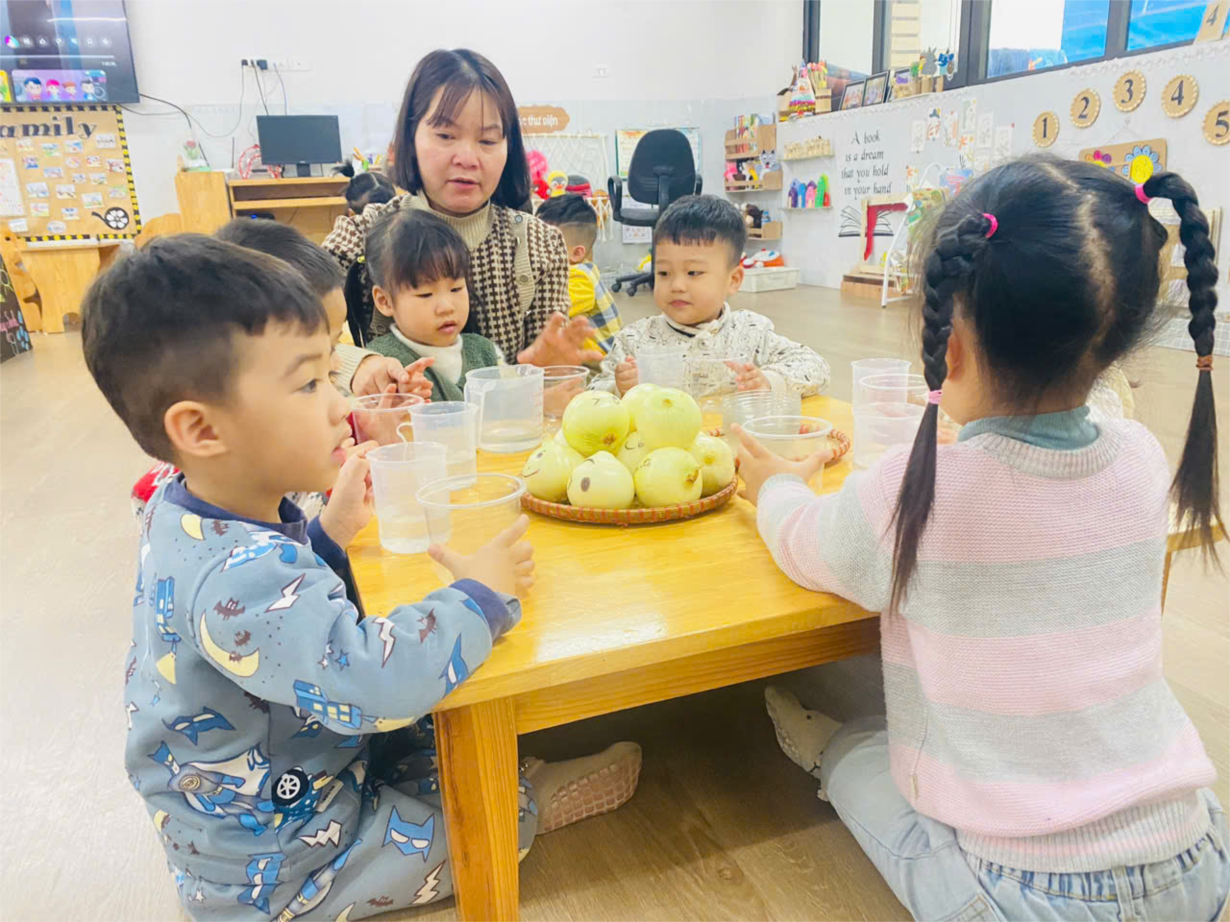 Hoạt động "Khám phá quả bưởi" của cô trò lớp bé C1.