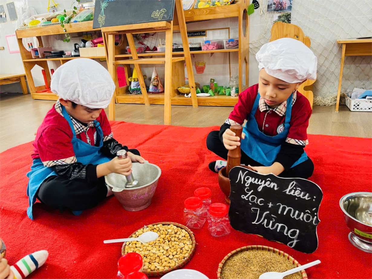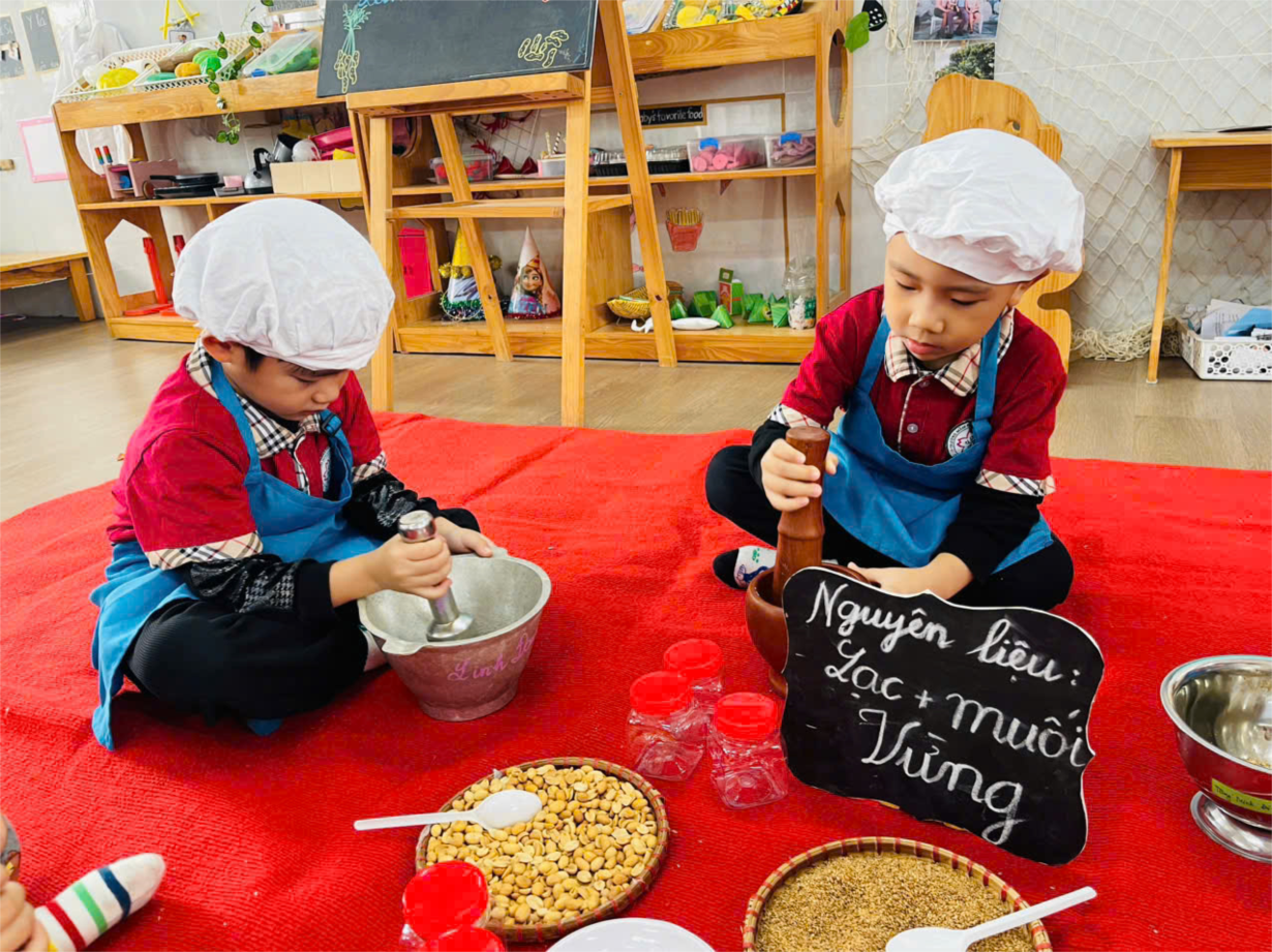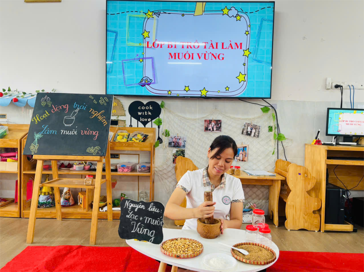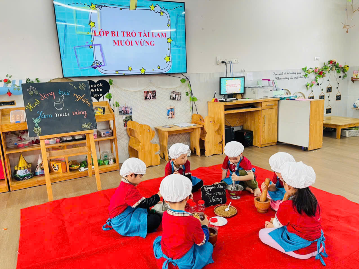 Các bé lớp B1 trổ tài làm muối vừng