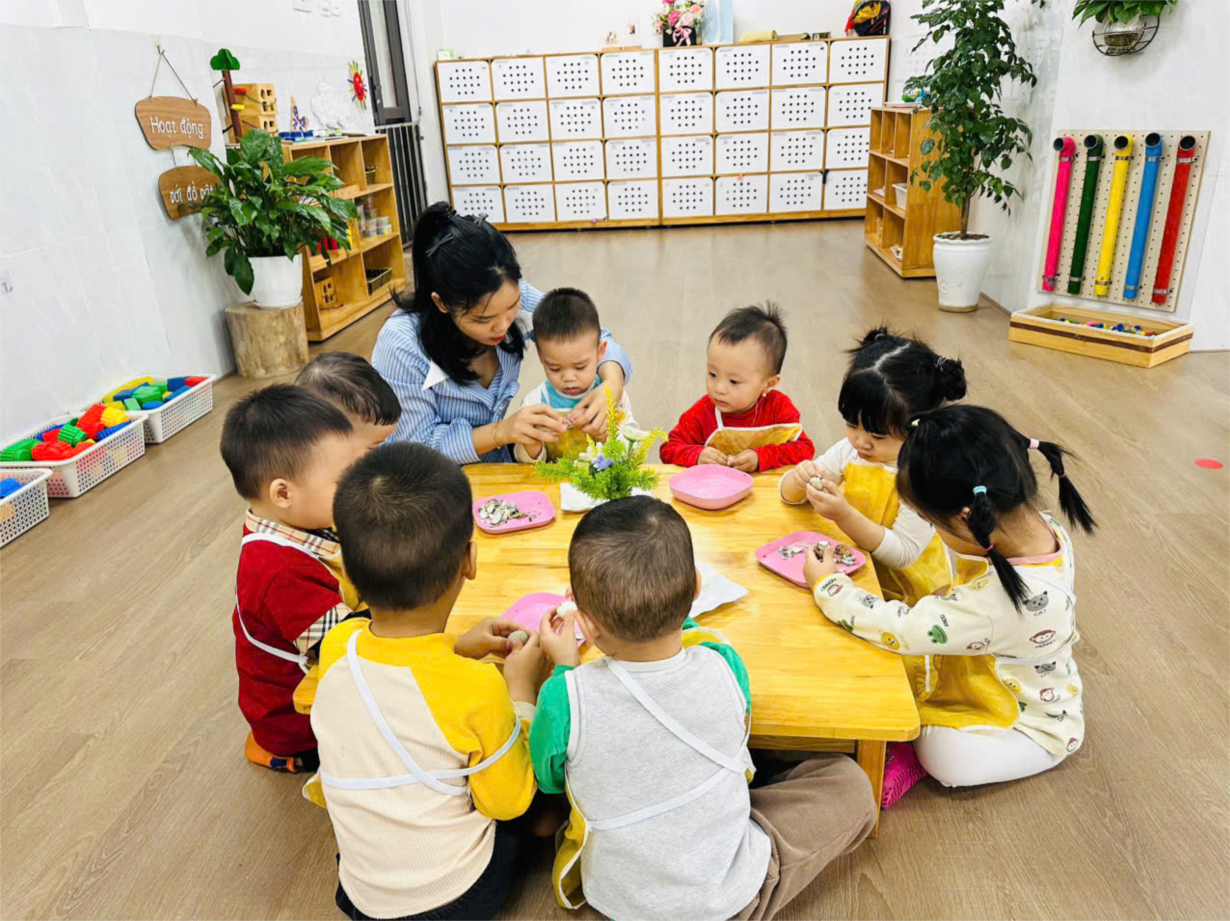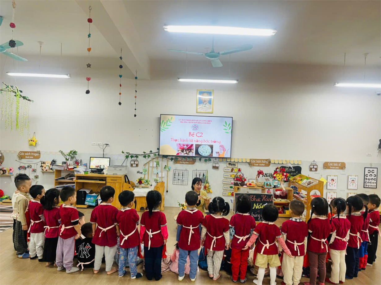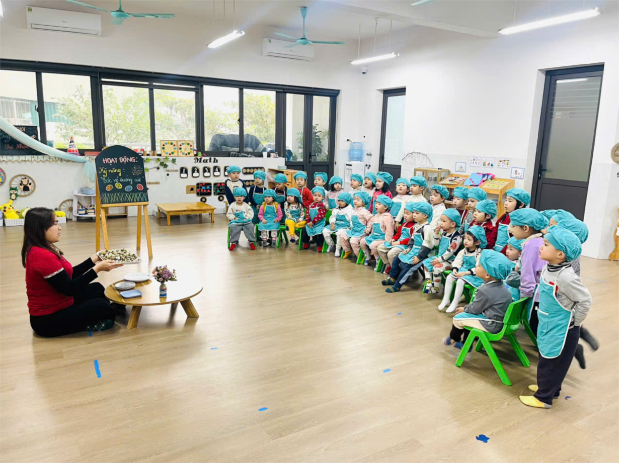 Hoạt động " Bóc trứng cút" của các bé lớp C2.