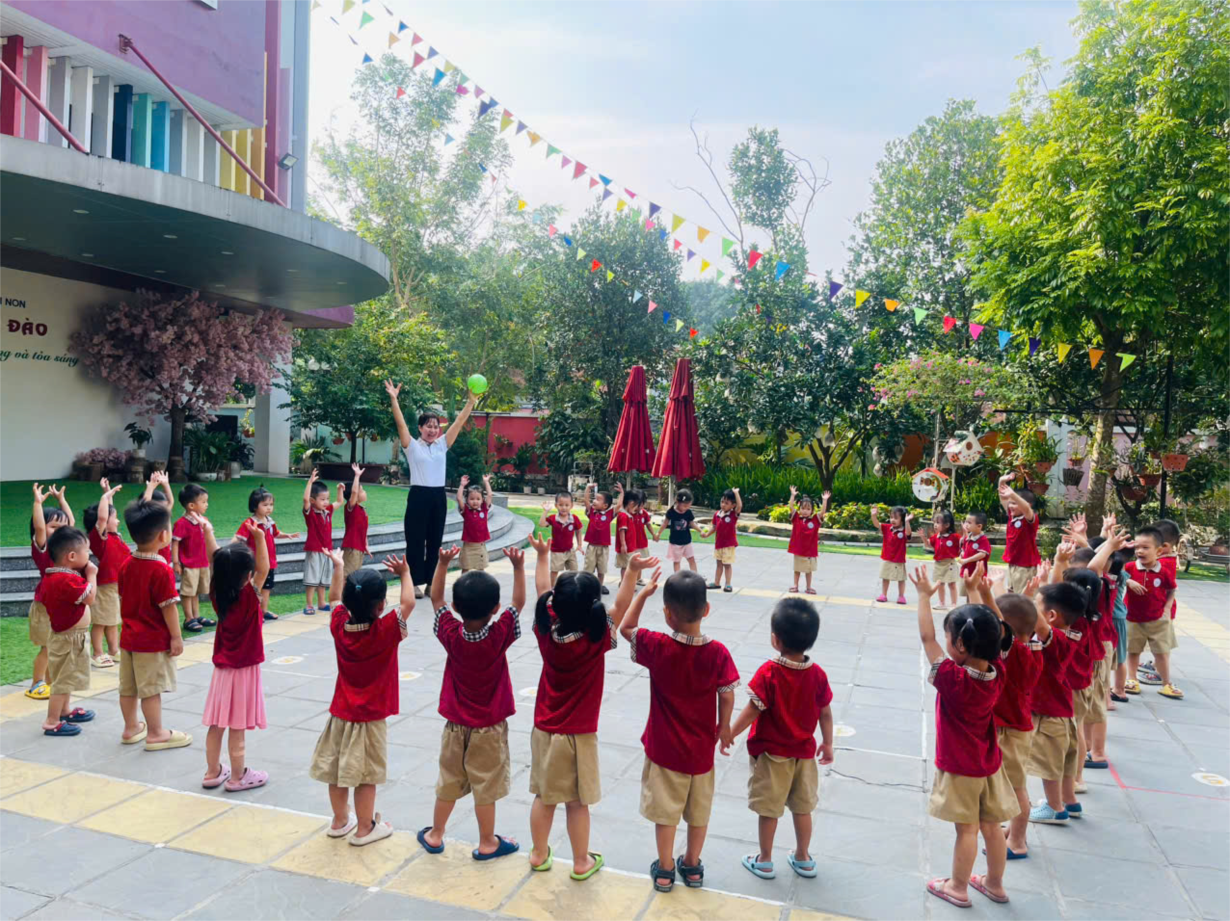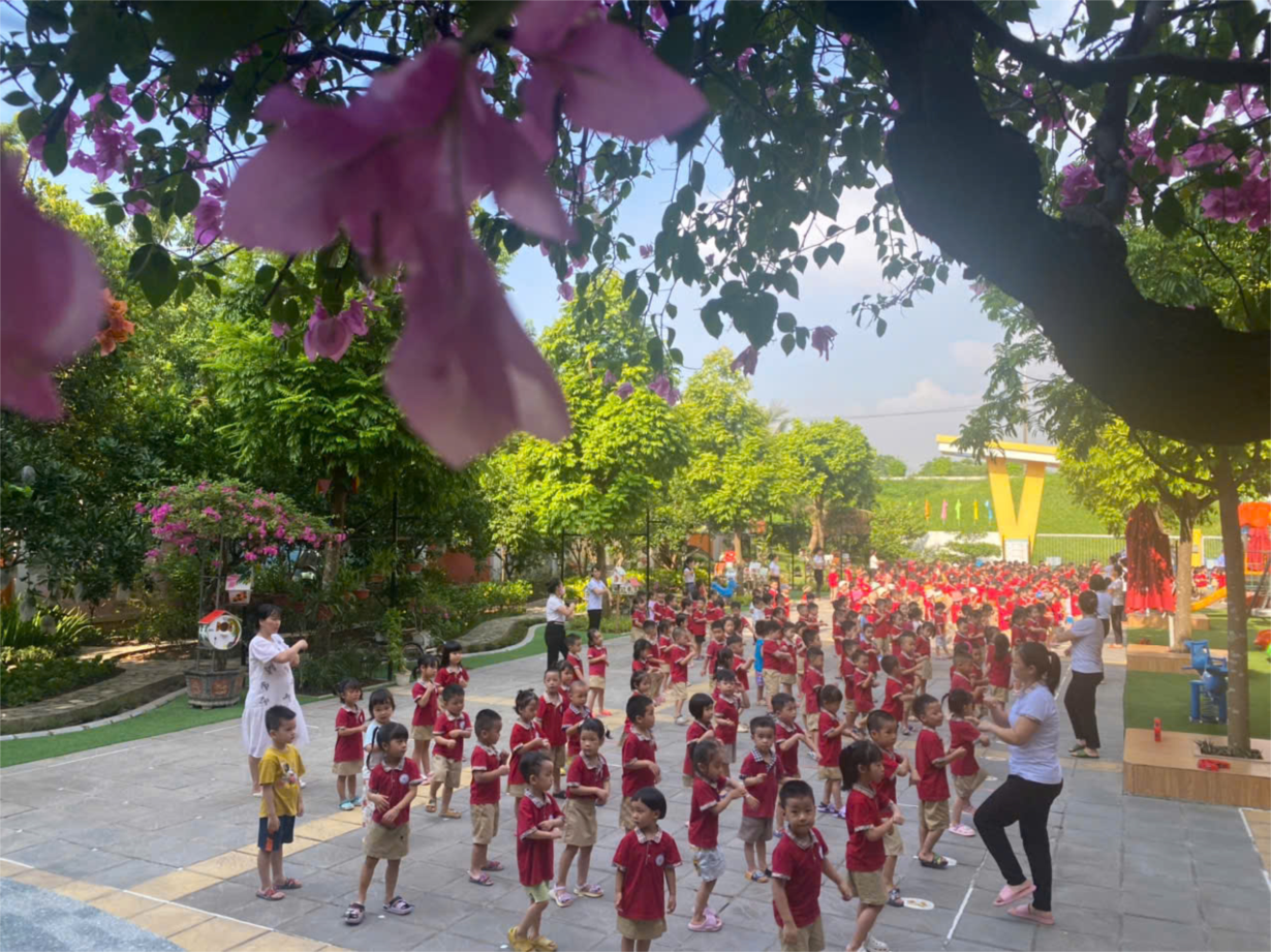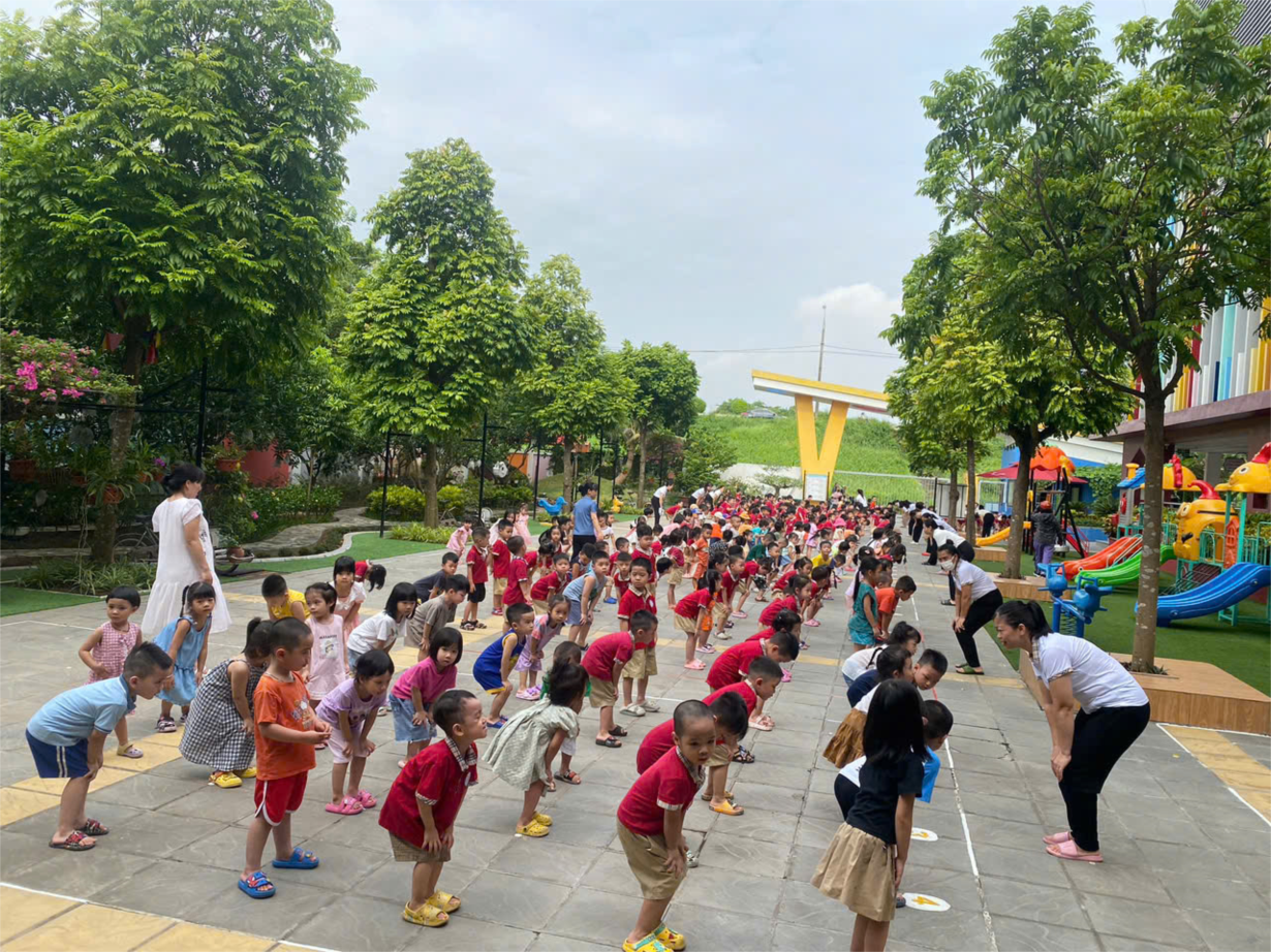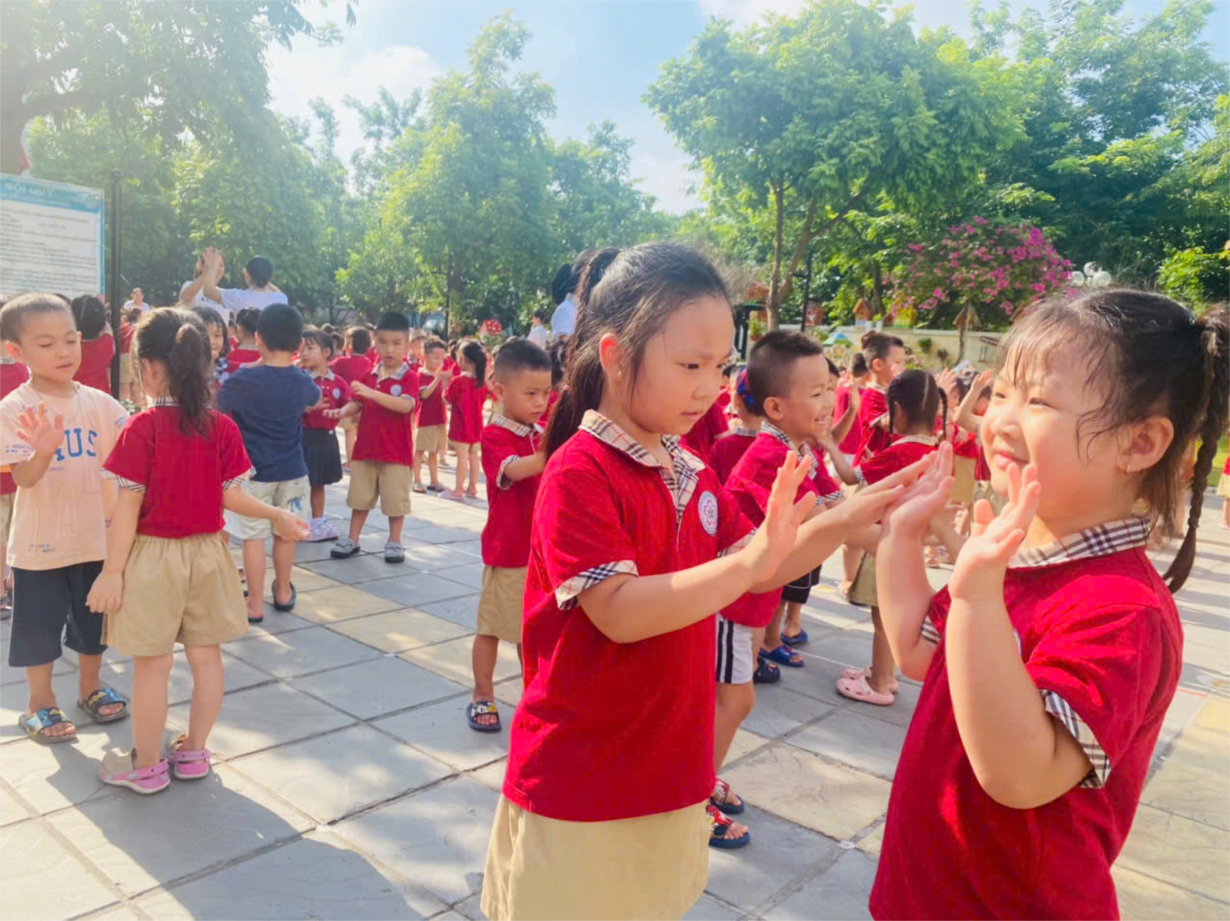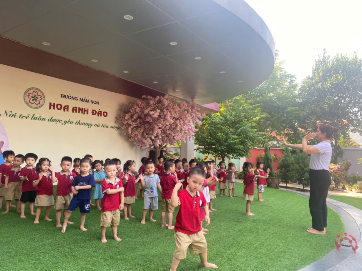 Giờ thể dục sáng chào ngày mới của các bạn nhỏ trường MN Hoa Anh Đào