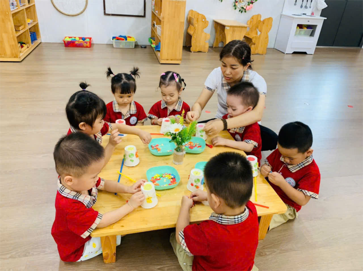 Hoạt động tạo hình" Dán xe tăng" của cô trò lớp C2.