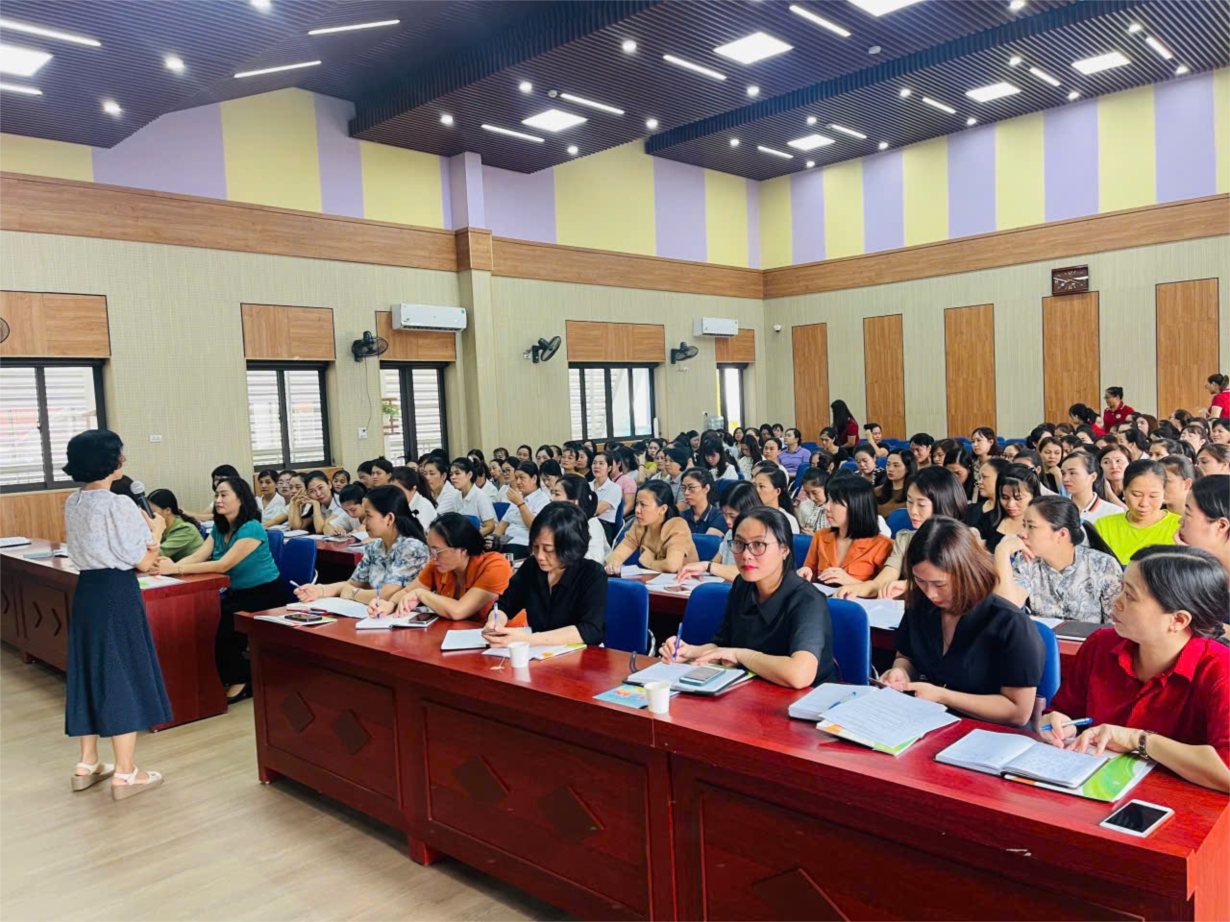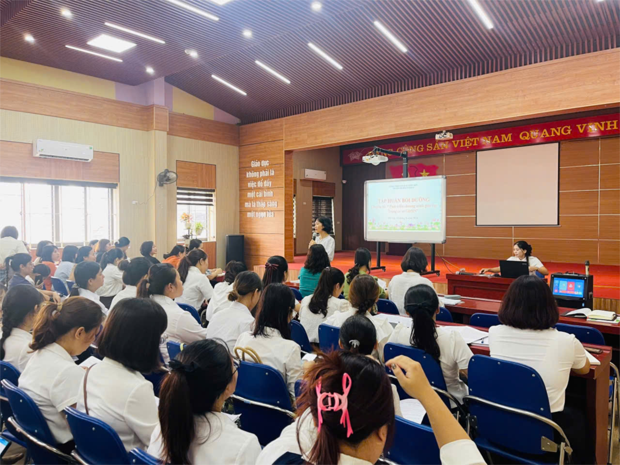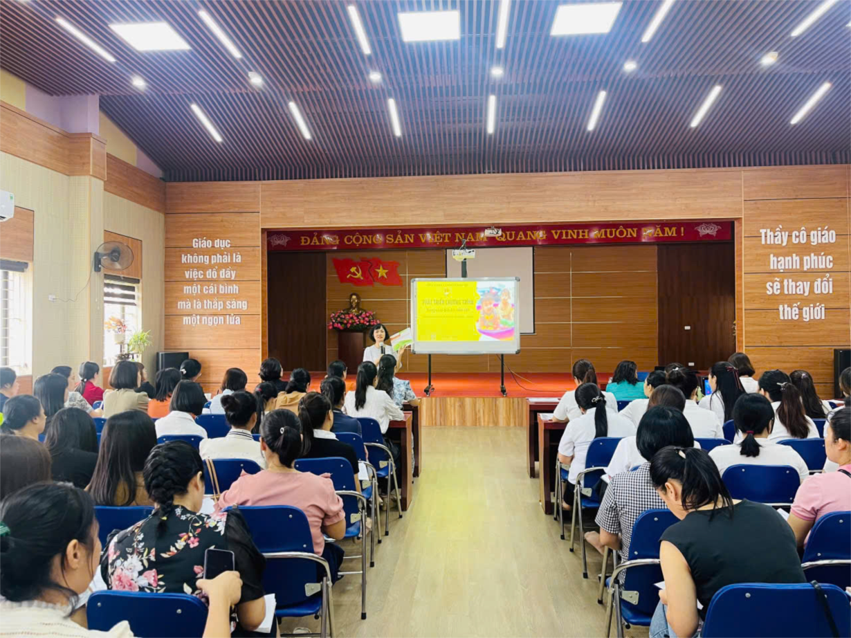 Trường MN Hoa Anh Đào tổ chức tập huấn chuyên môn với chuyên đề" Phát triển chương trình giáo dục mầm non trong cơ sở giáo dục mầm non"