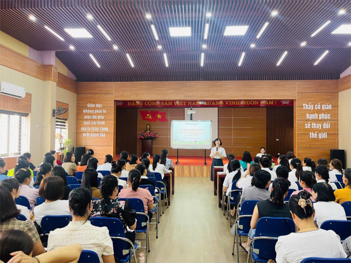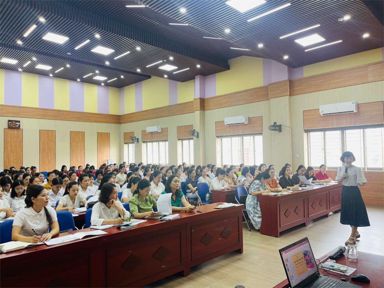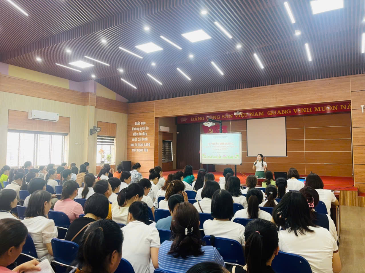 Trường MN Hoa Anh Đào tổ chức tập huấn chuyên môn với chuyên đề" Phát triển chương trình giáo dục mầm non trong cơ sở giáo dục mầm non"