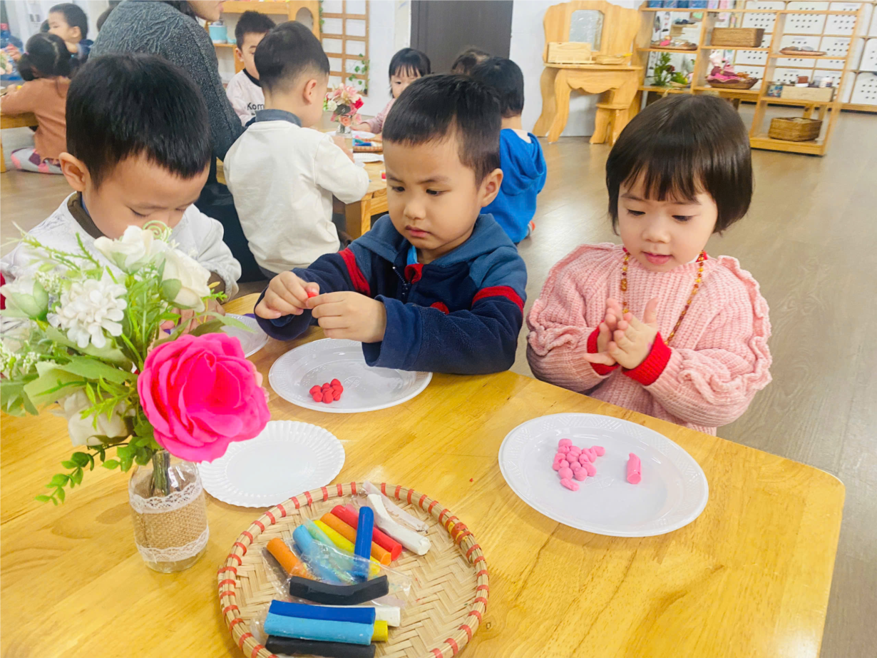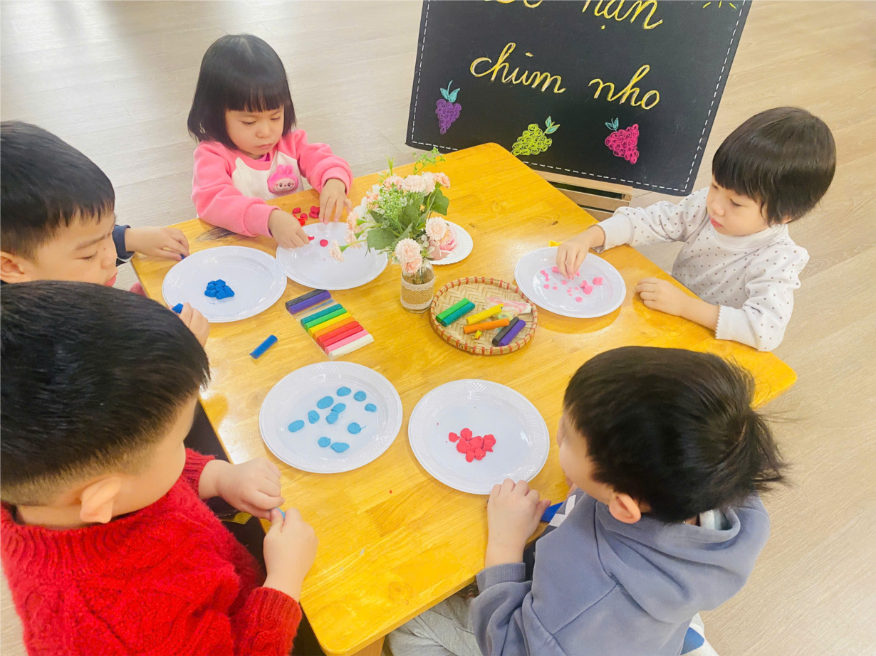 Hoạt động ' Nặn chùm nho" của các bé lớp C1.