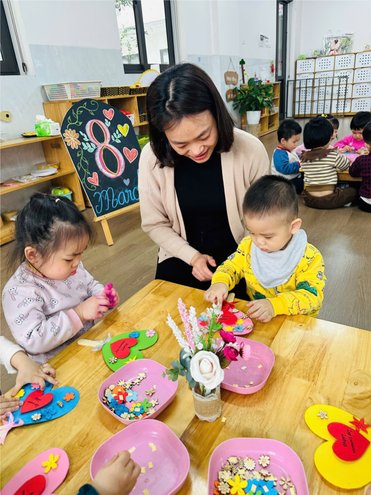 Trái tim yêu thương của các bé lớp NT D1 tặng bà, tặng mẹ nhân ngày 8-3
