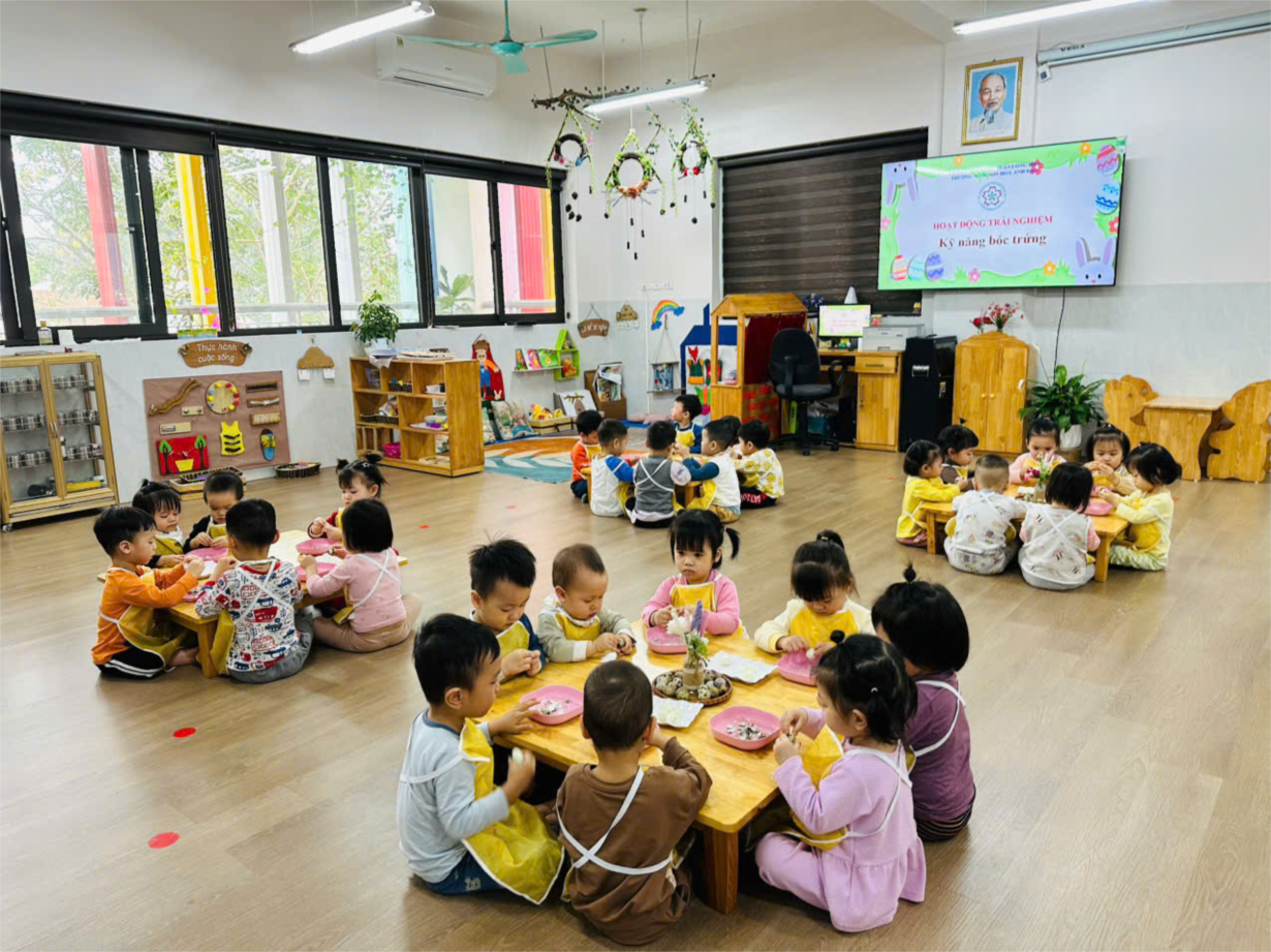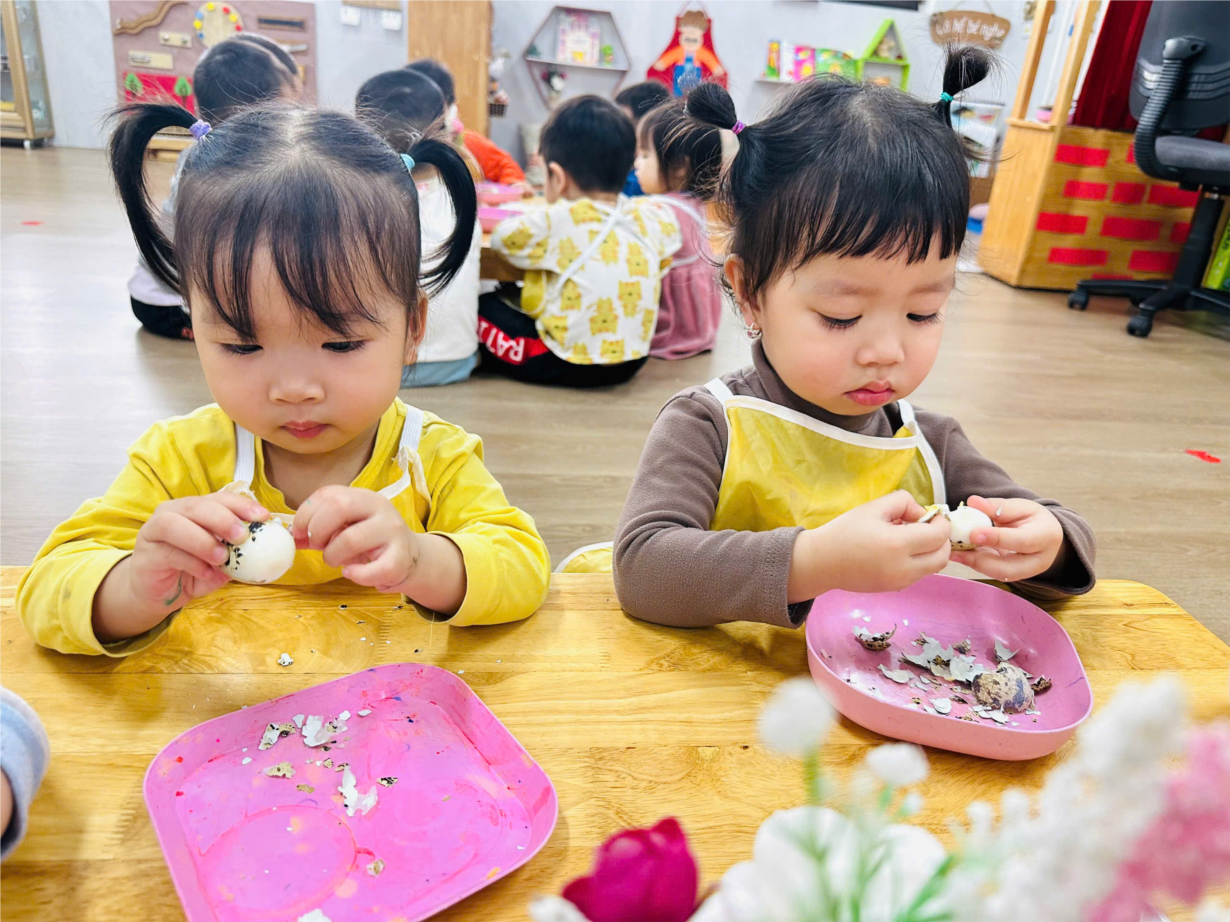 Hoạt động trải nghiệm "Bóc trứng" của các bé lớp NT D1