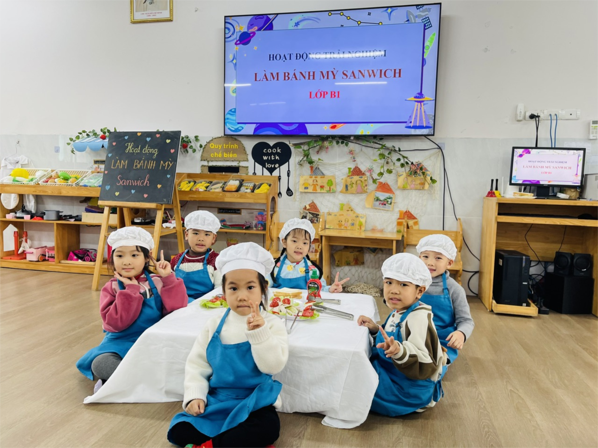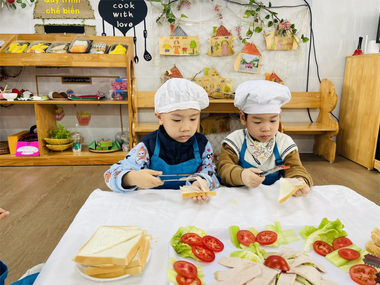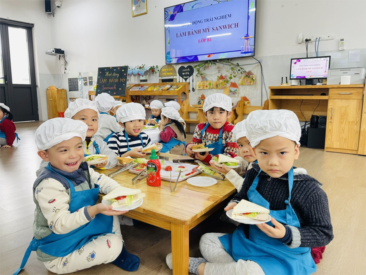 CÁC BÉ LỚP B1 LÀM BÁNH MỲ SANDWICH