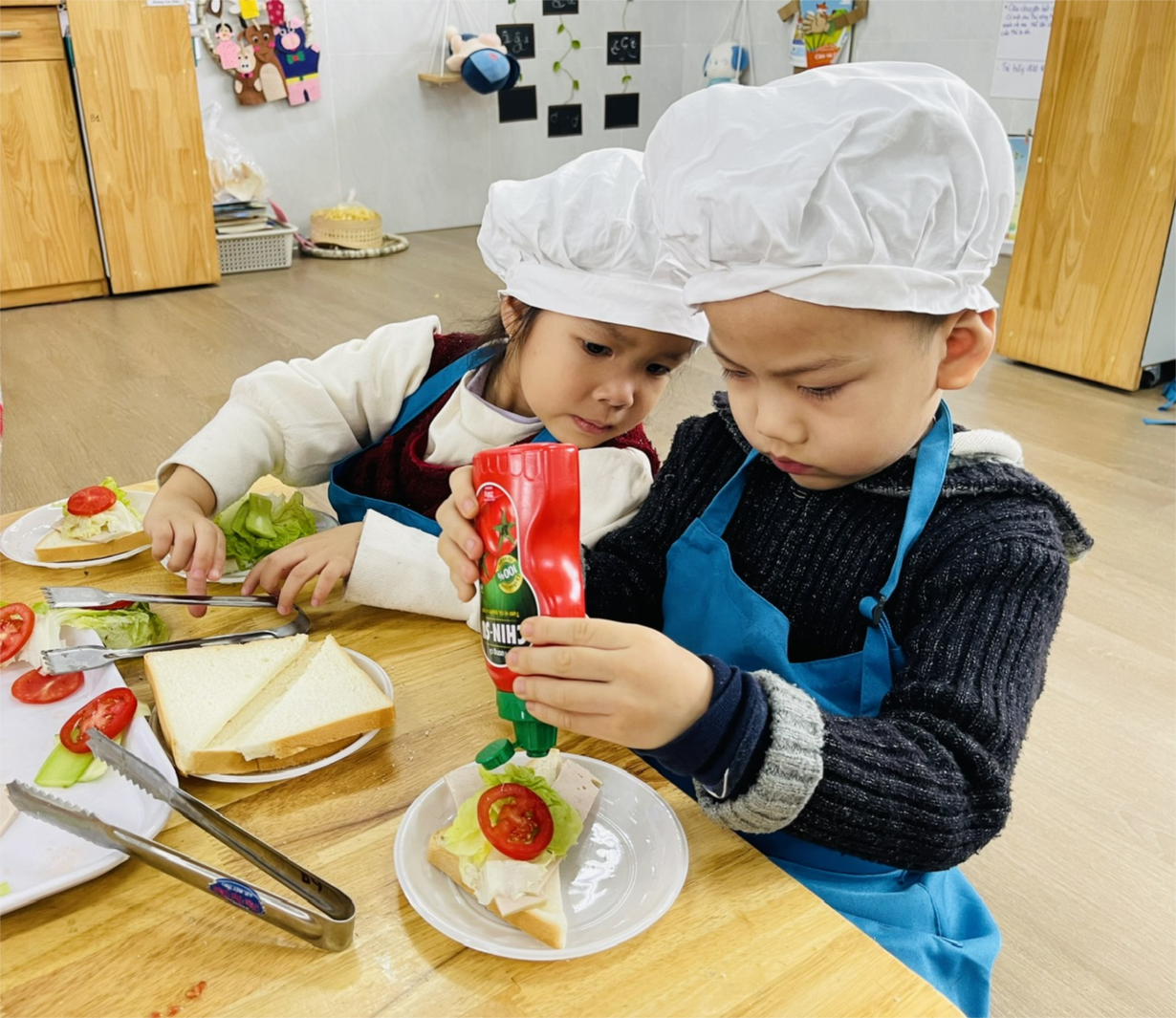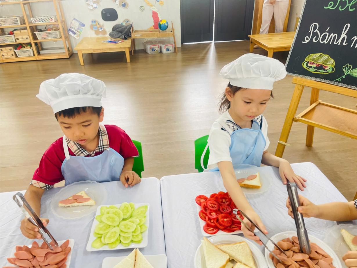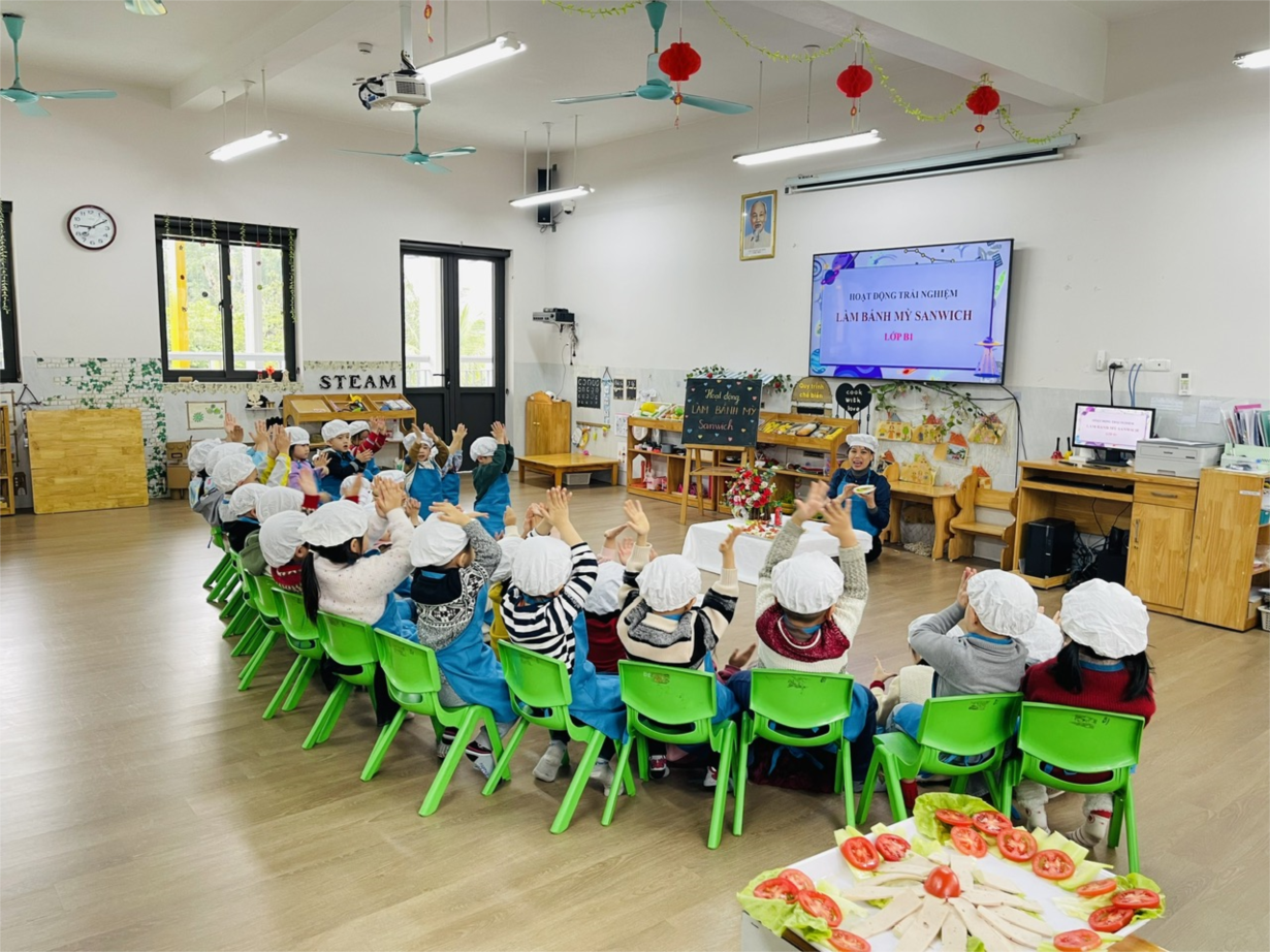 CÁC BÉ LỚP B1 LÀM BÁNH MỲ SANDWICH